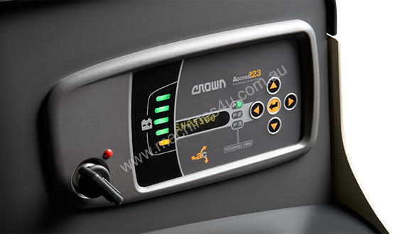 Crown’s exclusive Access Comprehensive System Control enables safe, optimised control. Operators also benefit from features such as ramp hold and speed control. Operators can quickly and easily select between two levels of programmable travel performance to match their experience level or application requirements. In addition, the power boost feature assures an extra measure of power when encountering obstacles such as dock plates or doorway transitions.