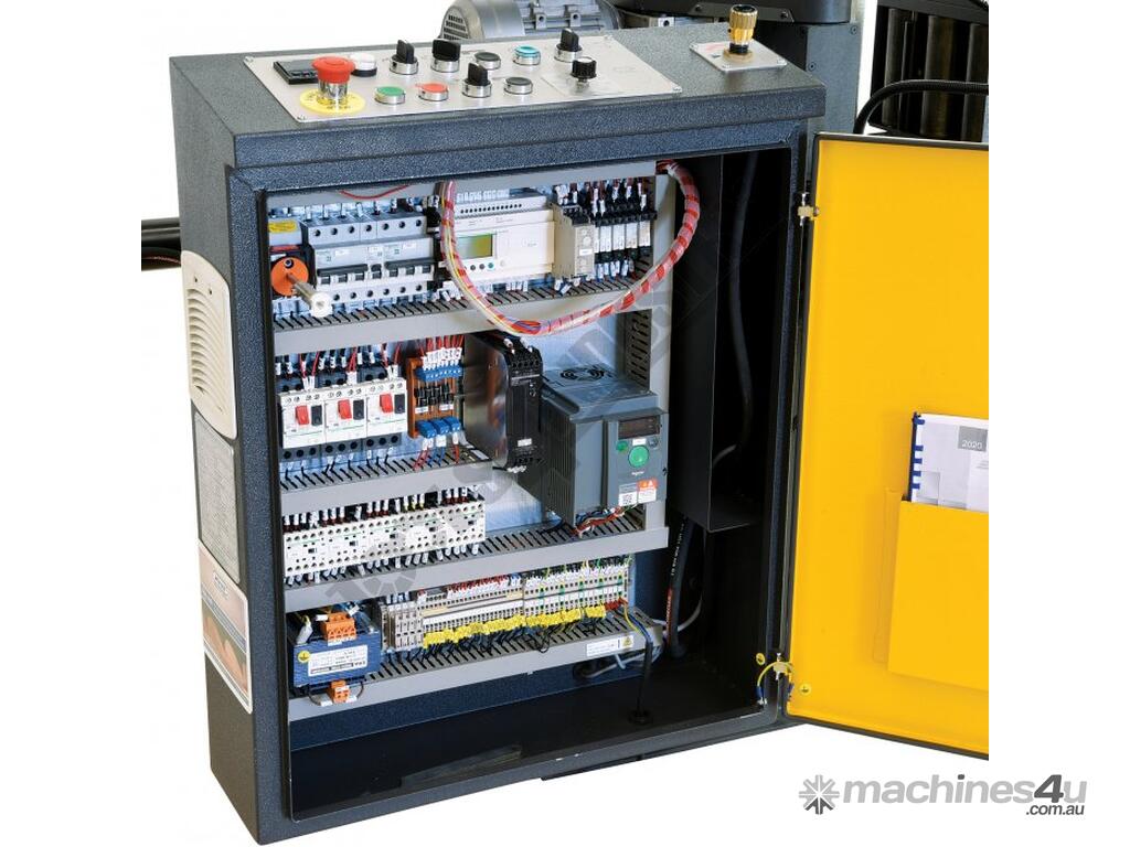 The BSMO-320 fully automatic metal cutting band saw with a cutting capacity of up to 320mm diameter or 300 x 300mm in steel at 90º. The auto feed rollers enables you to set up the control & material length stop to cut autonomously when auto mode is selected and the machine will also automatically stop after the programmed cut quantity is reached. Changing the blade speed to suit your material specifications is easily done by the electronic variable speed dial on the control panel and the ball bearing & carbide blade guides provide optimal control to achieve accuracy when cutting.