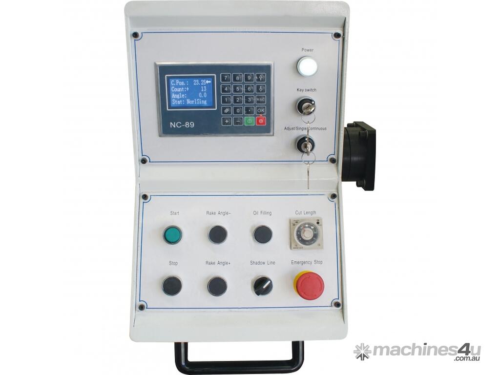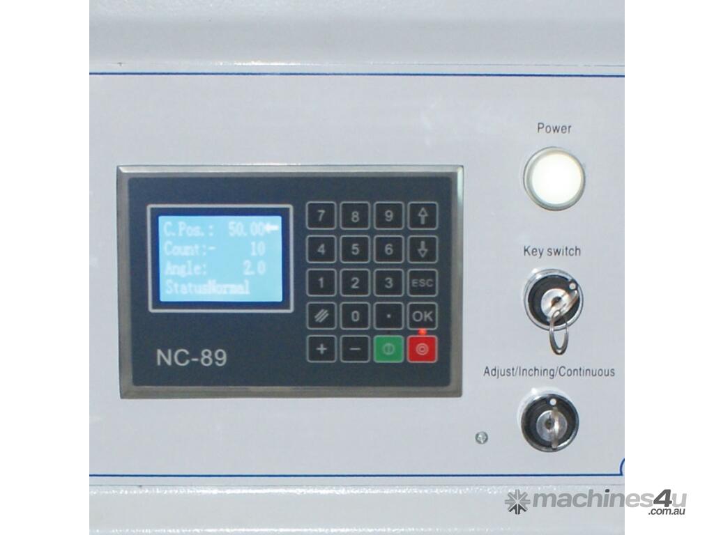 Ezy-Set NC-89 Go-To Programmable digital controller provides up to 1000mm travel on the powered leadscrew back gauge allowing operator to program the cut length required. Also fitted is a stroke counter & stroke adjustment dial allowing shorter materials to be cut using a shorter stroke length, this feature will increase production.