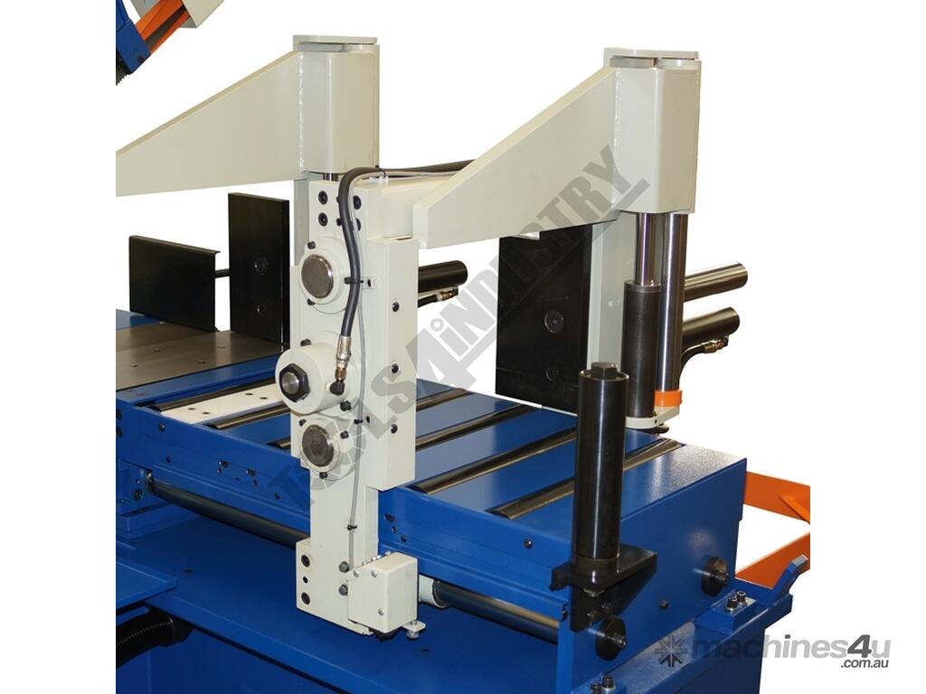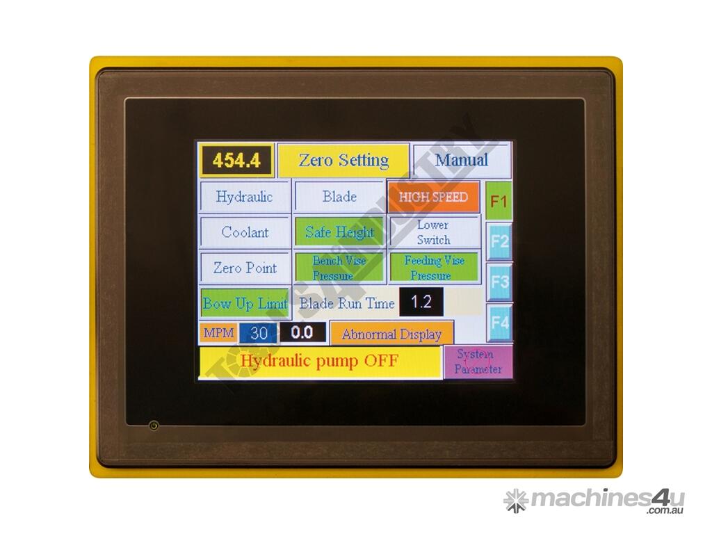 Fully automatic and intelligent HMI touch screen programmable control accepts many different job quantities and lengths complete with hydraulic vice clamping and hitch feed system