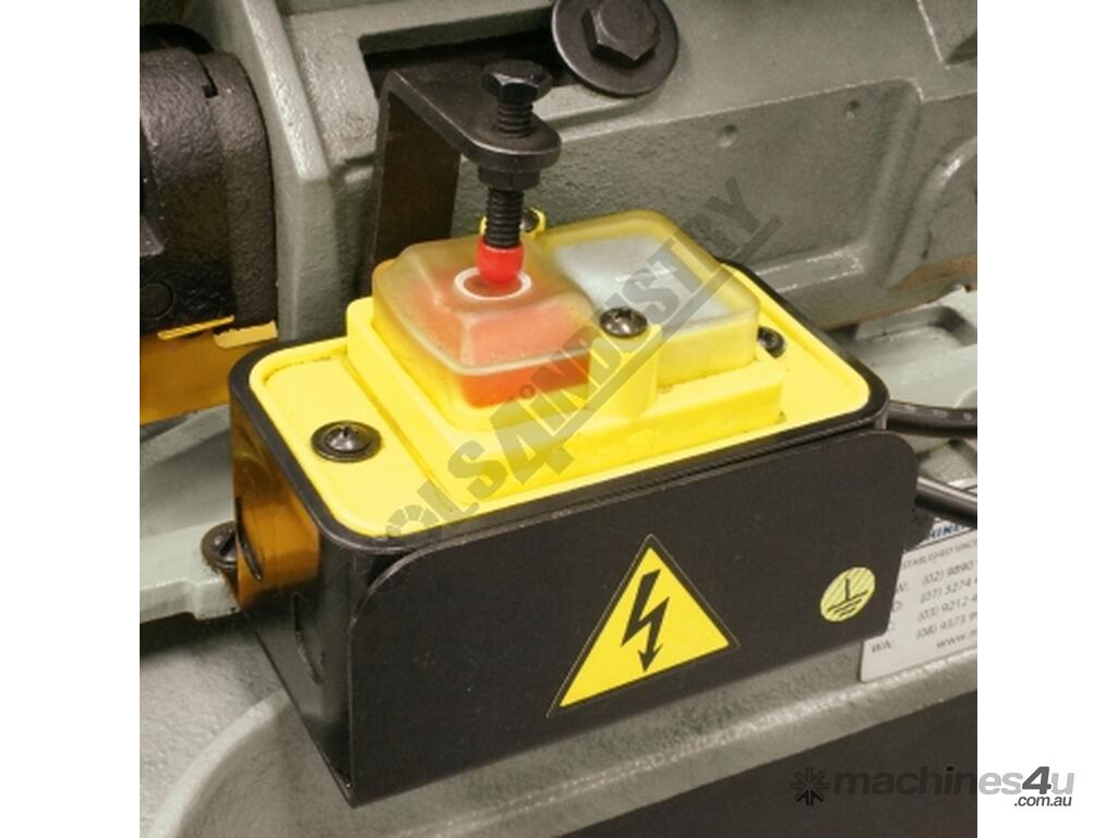 This economically priced metal cutting band saw incorporates a wide and robust four-legged stand cross braced with four leg supports for additional stability when cutting longer and heavier material. The ball bearing guided blade can be driven at a choice of three speeds via a reduction gearbox, depending on the type of material being cut and there is an automatic cut-off, adjustable for height, for stopping the motor when the cut is complete.