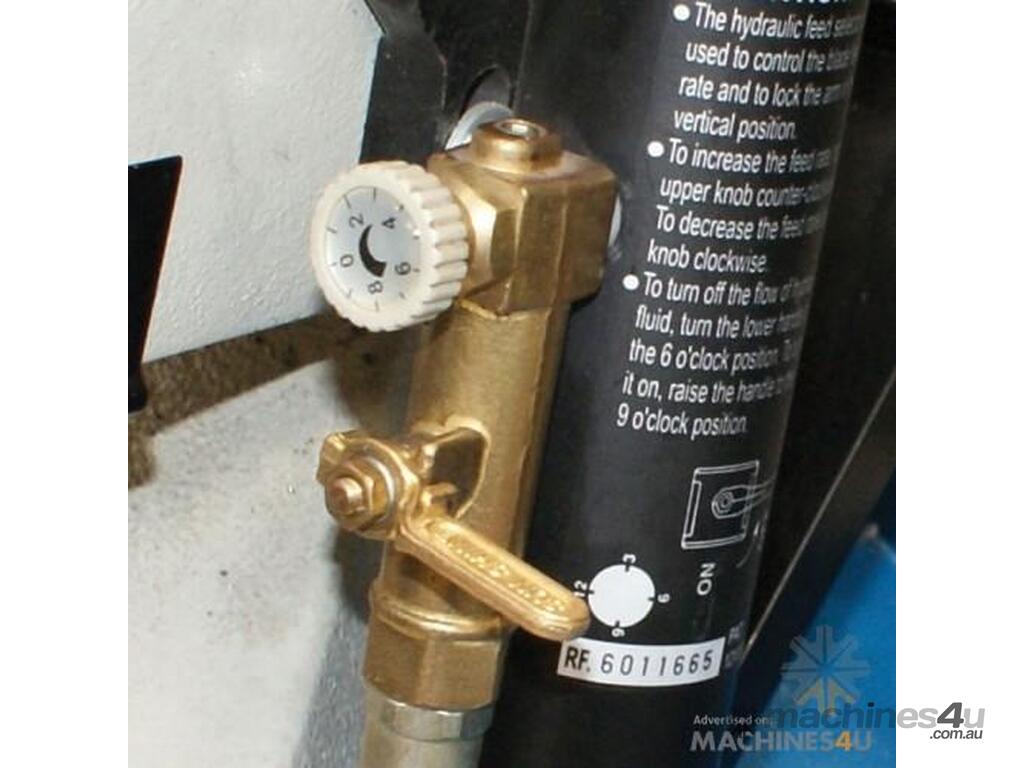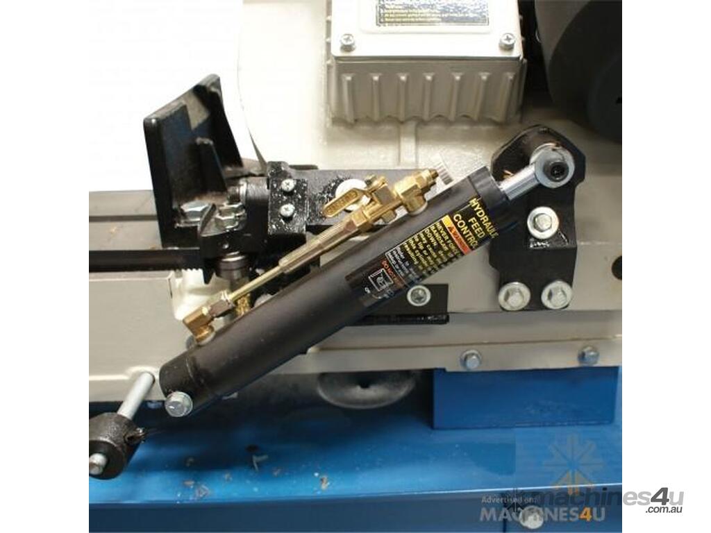 The cutting operation is fully automatic, with the weight of the head providing the cutting force and a limit switch shutting the machine down when the cut is complete. The weight of the head is counterbalanced by an adjustable hydraulic damper to control the feed rate, an excellent machine choice for maintenance shops, medium steel fabrications, and engineering workshops.