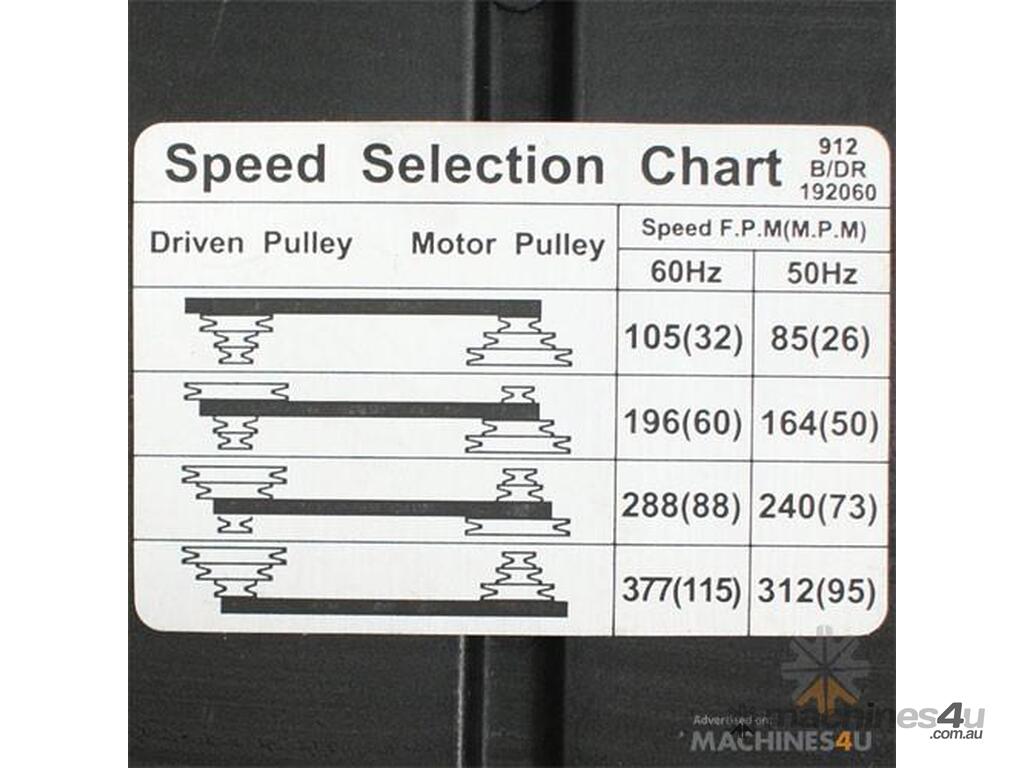 The BS-912 is a larger 240 volt band saw suitable for the medium fabrication and general engineering workshops. It features increased motor power, four blade speeds, double row ball bearing blade guides, a built-in coolant system and greatly increased cutting capacity.