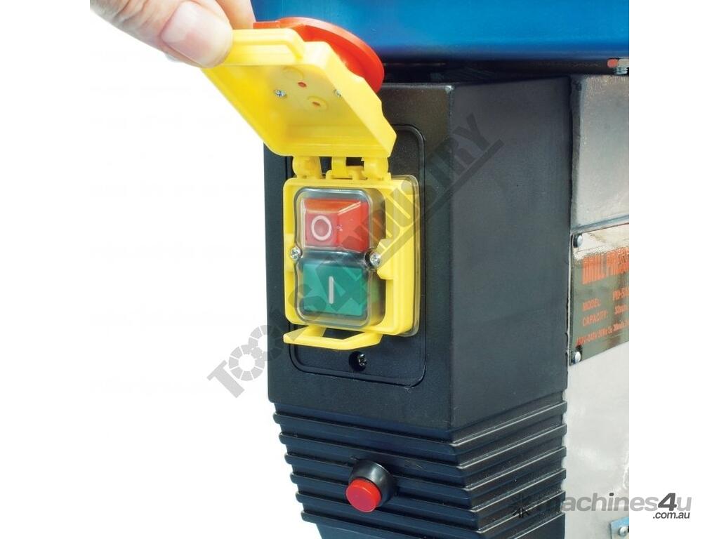 Work light mounted underneath drill head to provide direct light onto the work piece