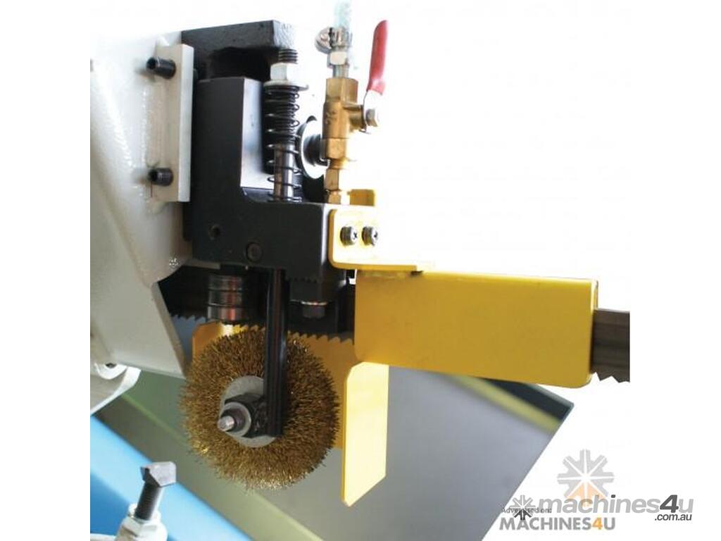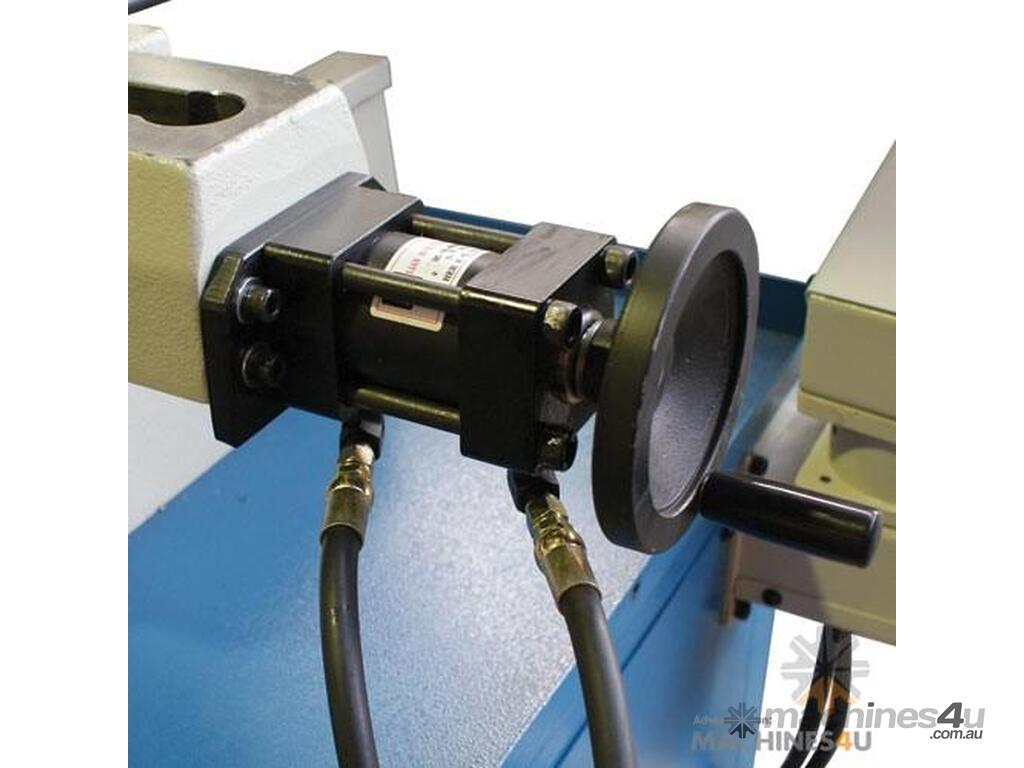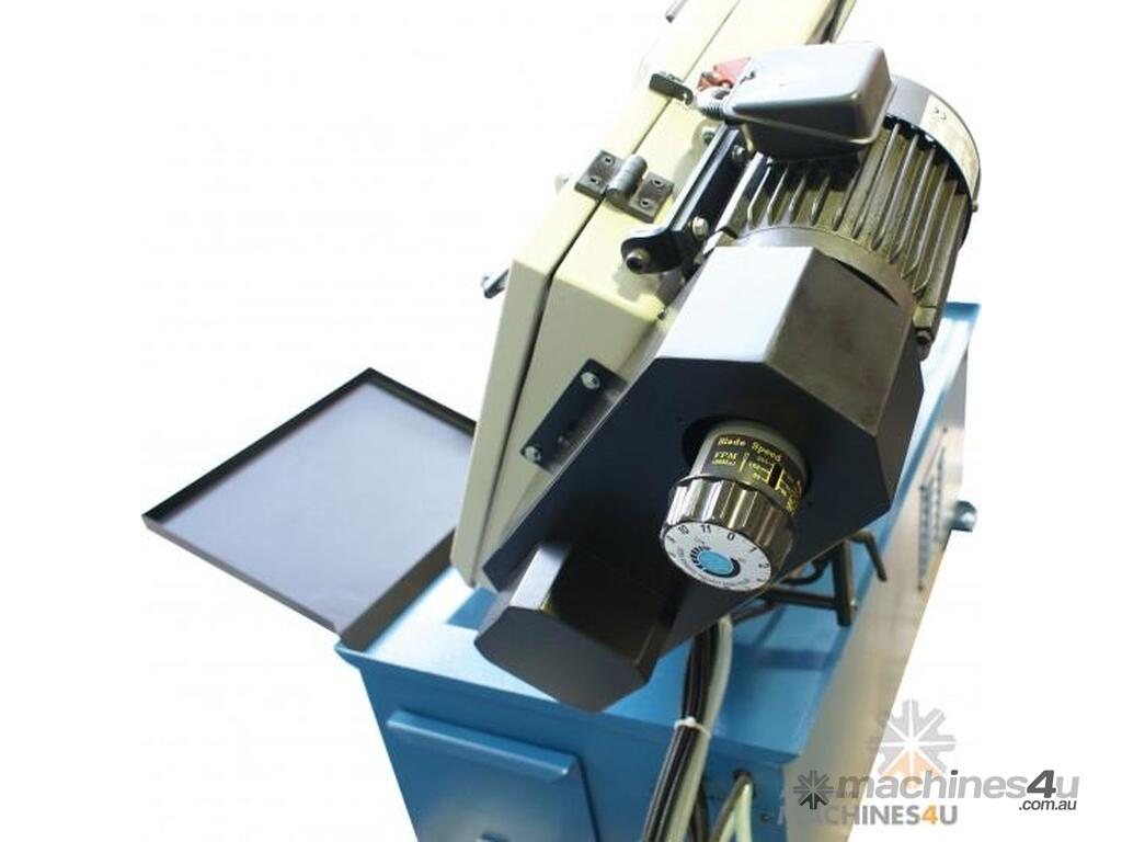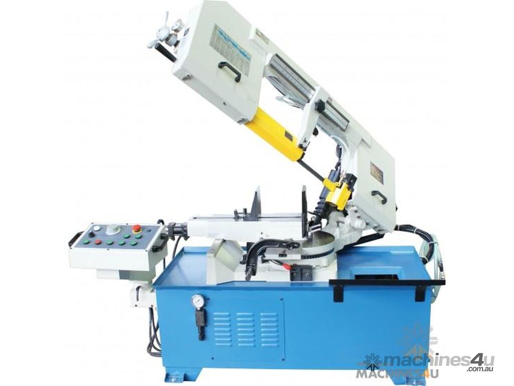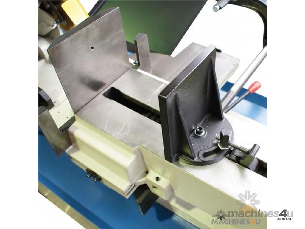 The cutting operation works automatically with the weight of the head providing the cutting force and a limit switch shutting the machine down when the cut is complete and automatically returning to set height position. The weight of the head is counter balanced by an adjustable hydraulic damper to control the feed rate, an excellent machine choice for maintenance shops, steel fabrications, and industrial engineering workshops. If you're looking for this size range of machine, you'll have a tough time finding a better metal-cutting band saw with these features and at this price, It represents excellent value.