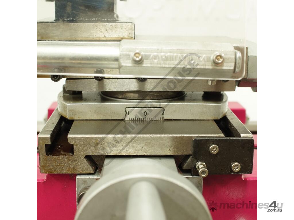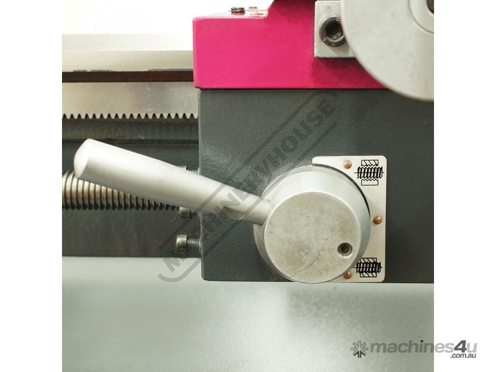 Other very useful features included are longitudinal power feed, quick lock tailstock and both metric and imperial thread cutting, ranging from 8-56 tpi or 0.2-4mm. Also included are a 4-way indexing tool post with 12mm tool shank capacity, fine adjustment on the tailstock for taper turning and the rear splash guard. A 125mm 3-jaw chuck with reverse jaws is also supplied, the headstock spindle being through bored to 26mm diameter. There are many additional options available including a milling head (BF-16AV) or (BF-20AV) to turn this machine into a very capable all round machining centre.