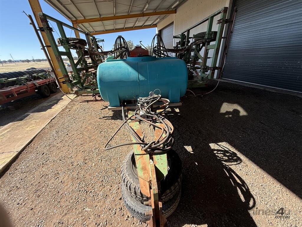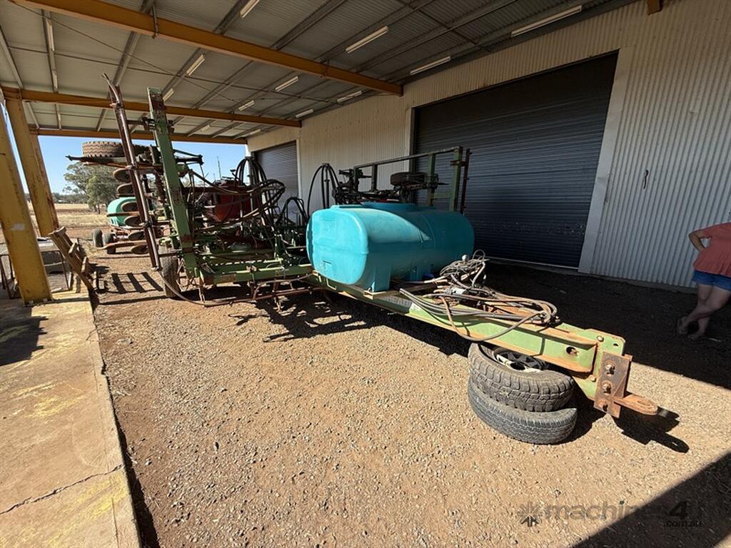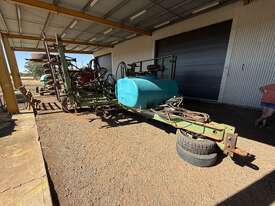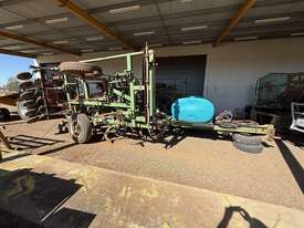 Circa 1982 John Shearer Stubble Trashworker Air Seeder with 1200 litre Rapid Spray tank fitted & 2000 Horwood Bagshaw 4000 litre cart. John Shearer Stubble Trashworker converted to air seeder originally 22 hydraulic tynes and extended to 26 tyne at 12" spacings. Has also been setup for one-pass chemical application. Spray tank fitted with electric pump and in cab controls. Cameras located in bin and on drive mechanism. Spring press wheels fitted. Transport width approximately 4 meters. heavy duty machine in