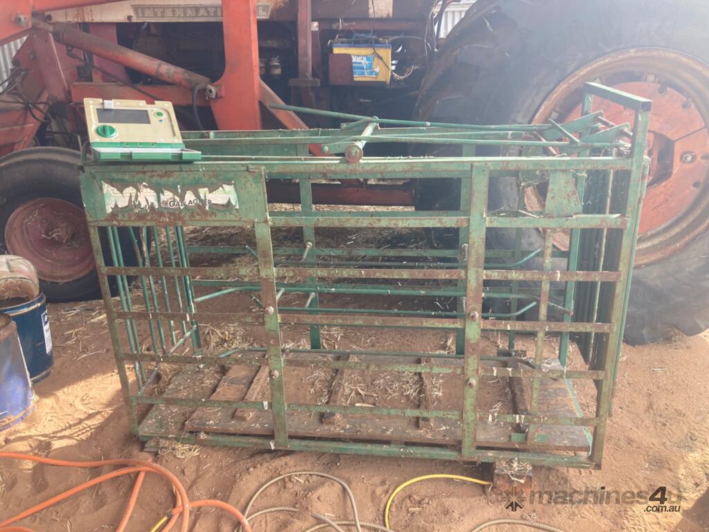 GALLAGHER SHEEP WEIGH CRATE. INCLUDES WEIGH BEAMS AND MONITOR. WAS WORKING WHEN STORED IN SHED.