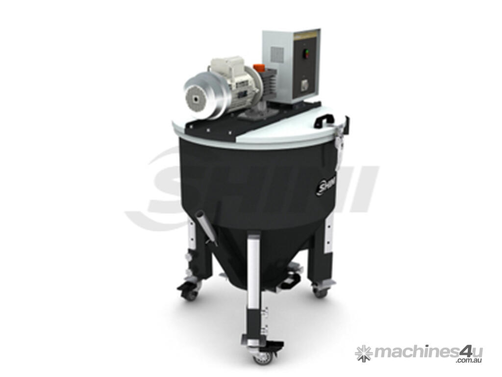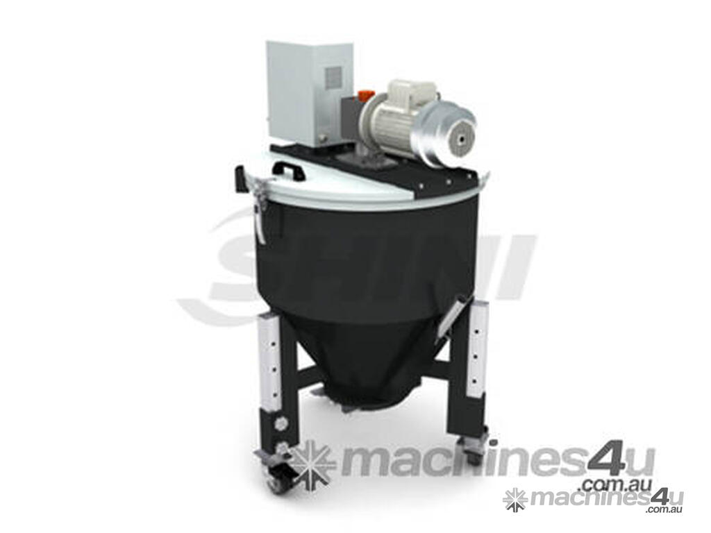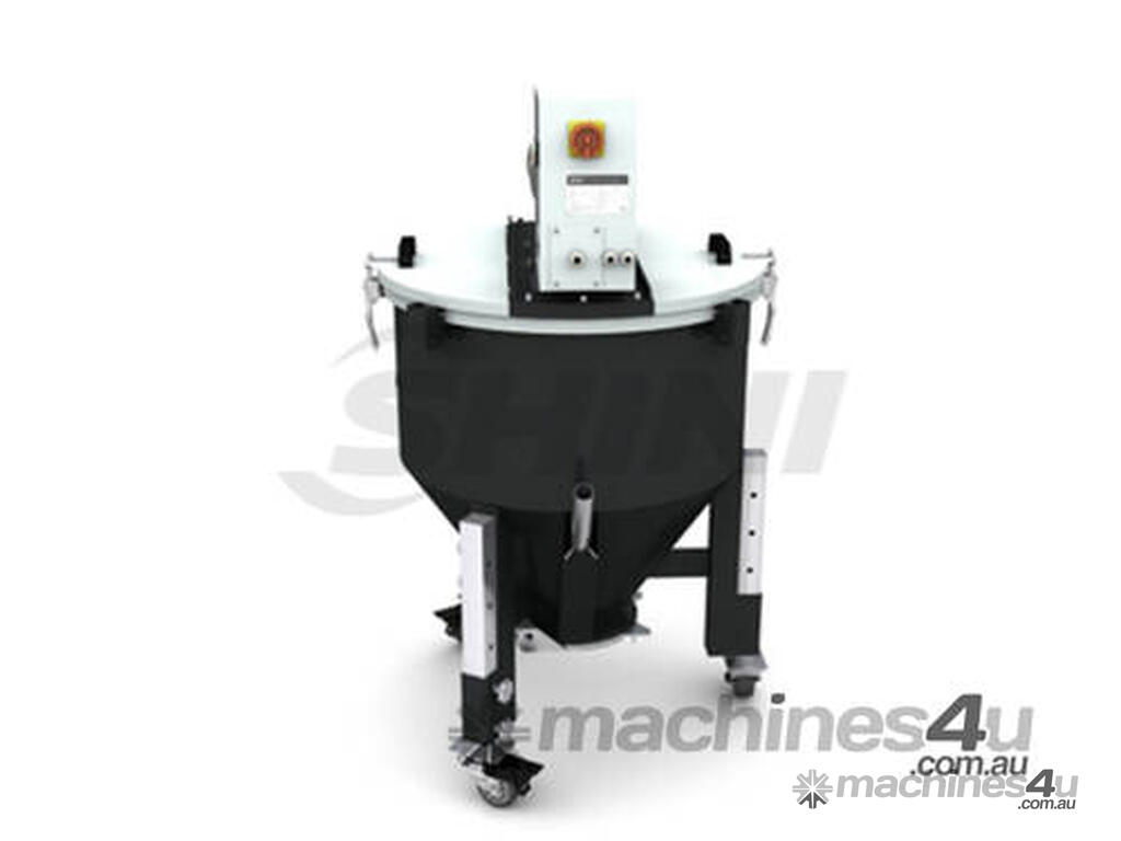 Vertically mounted blending screw and cylinder ensure even mixing of materials.