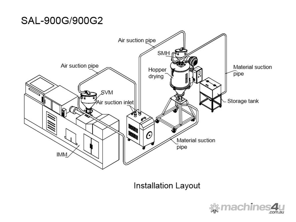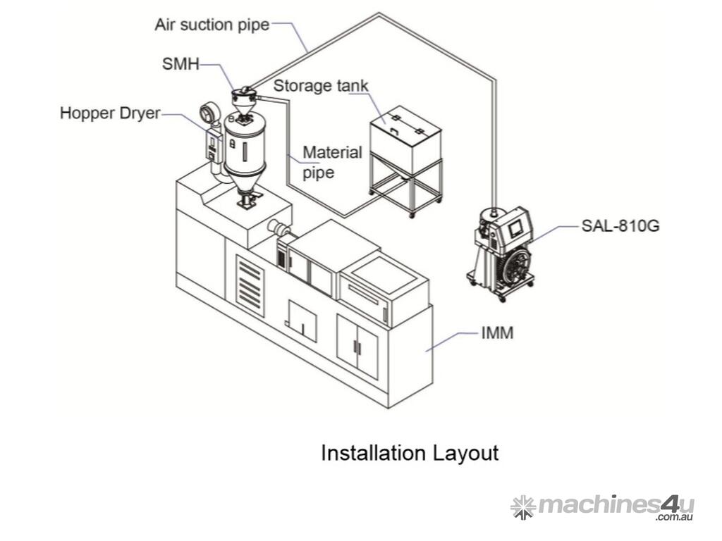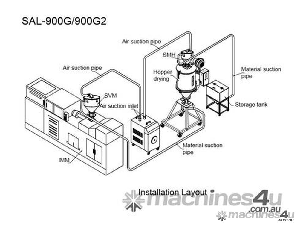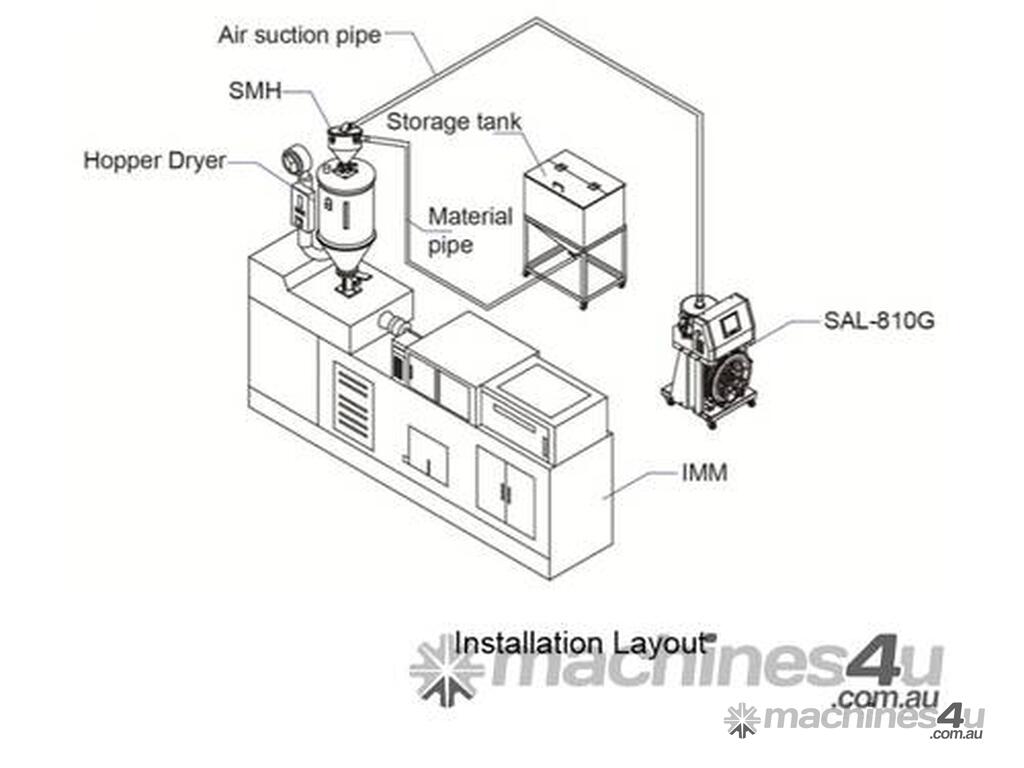 SAL-G series are suitable for conveying plastic granules over long distance. Utilizing high efficiency vacuum blower to produce vacuum in material hopper, plastic materials will then be fed into material hopper by air pressure.