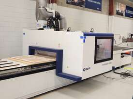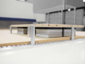 Every detail is designed to make any performance accessible, leading to efficiency, quality and business evolution. Fast loading process thanks to the load unload cycle being performed in a single movement Fast nesting processing saves 60% of time on drilling cycles thanks to the new drilling heads. Fast tool change with less than 15 seconds for the tool change thanks to the tool changer installed on the mobile unit.