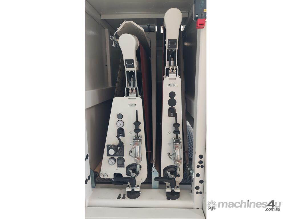 The new SCM compact wide belt sander: it is extremely versatile and allows the sanding of solid wood, the pre-sanding and sanding of veneered panels and the finishing of painted surfaces.