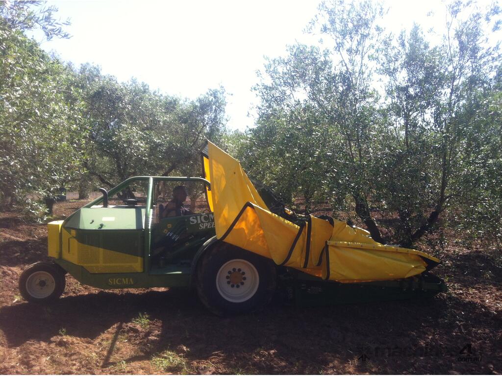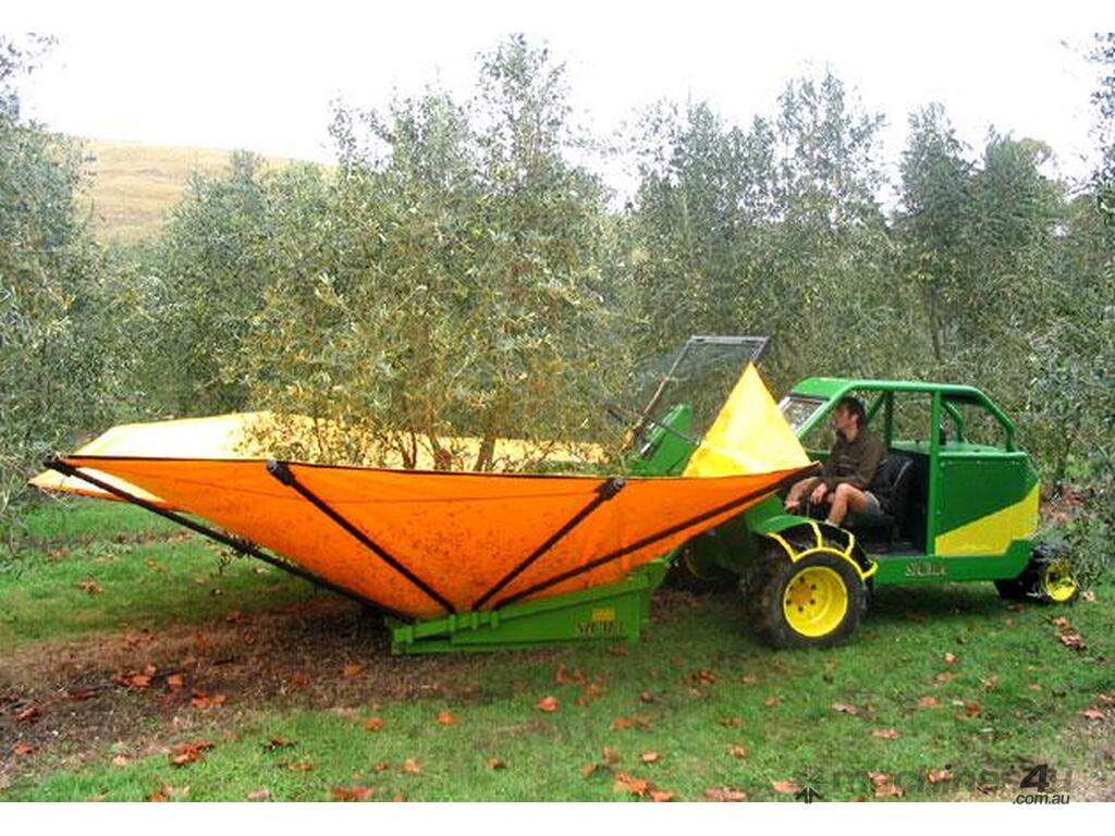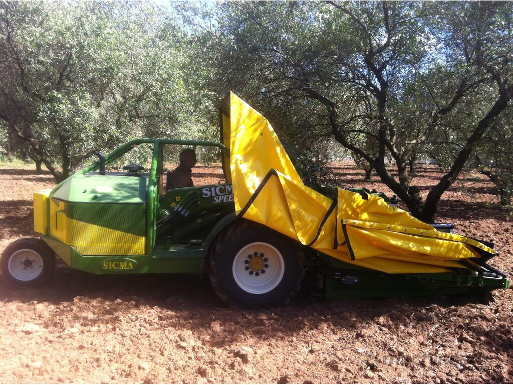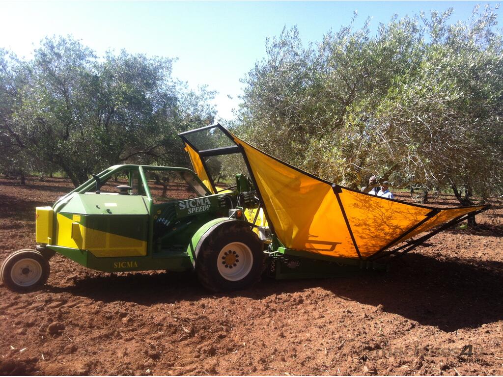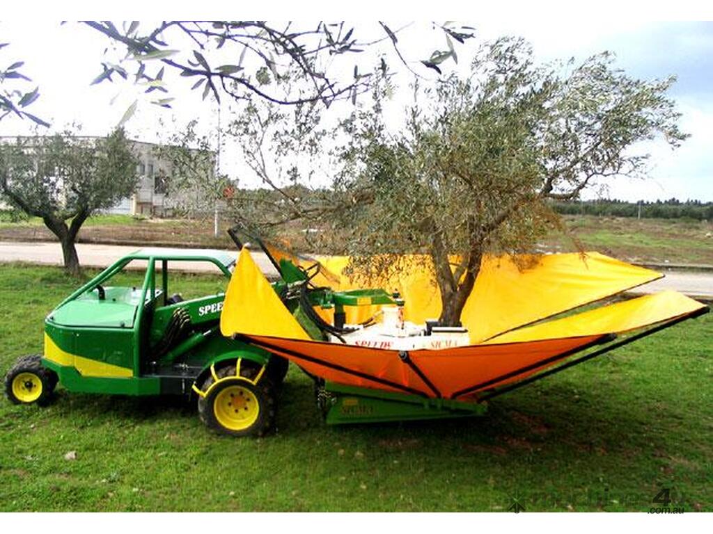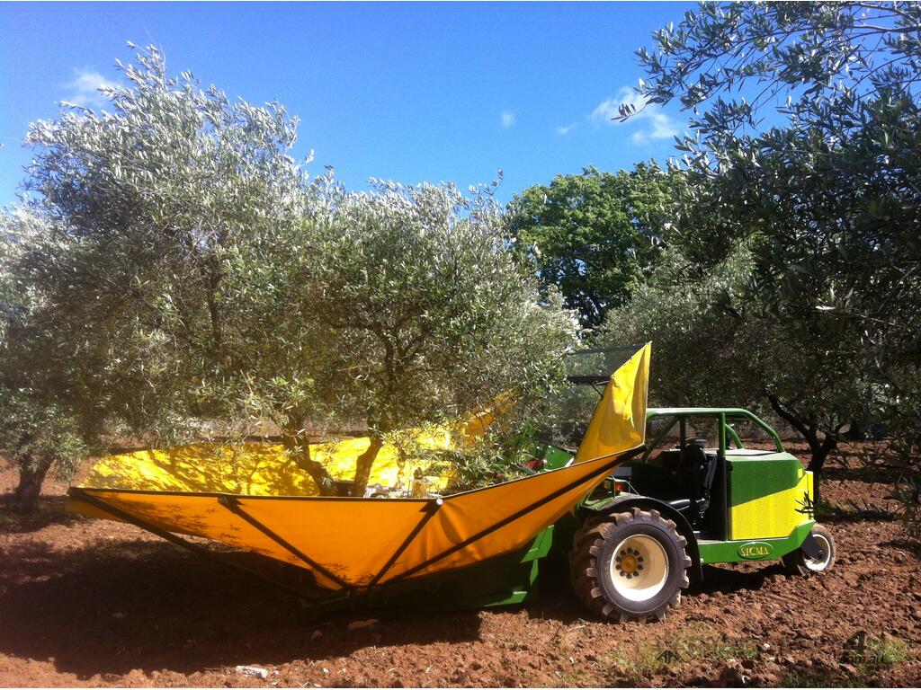 The most advanced technology for harvesting olives and other hanging fruits. This solution permits a single operator to harvest the fruits in a reduced time and unload them into bin or trailers. This harvesting system considerably reduces the production costs. The vibration system at high frequency increases the percentage of fruit fall off from the tree, reducing the harvesting time.
