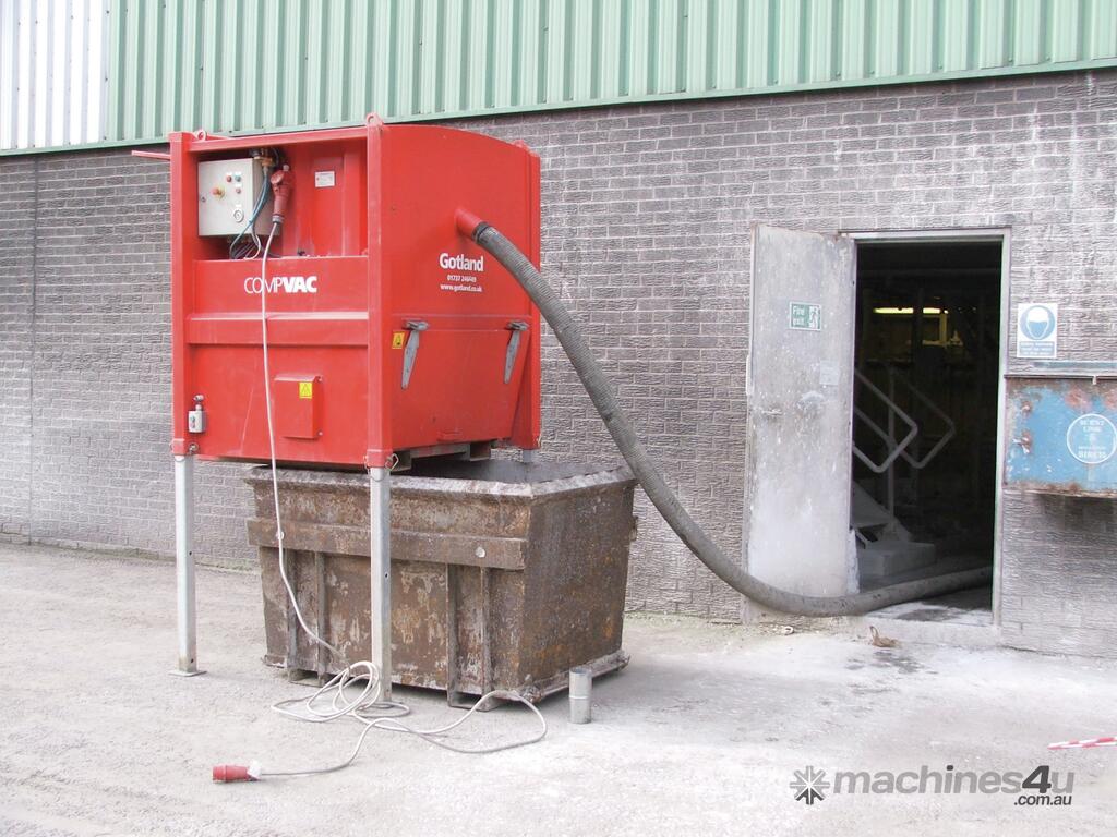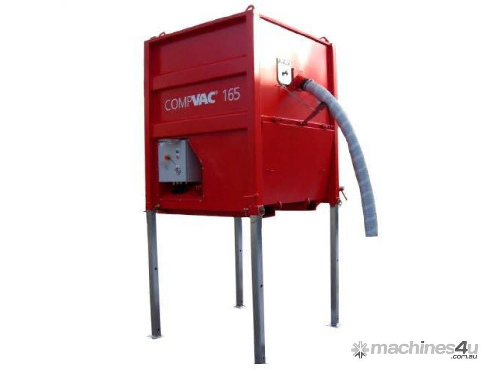 The CompVac is a semi-mobile, electrical powered vacuum unit mounted on a rigid stand equipped with retractable legs. It is designed for applications requiring collection of material into an open skip or container. It can easily be manoeuvred using a standard forklift or crane.