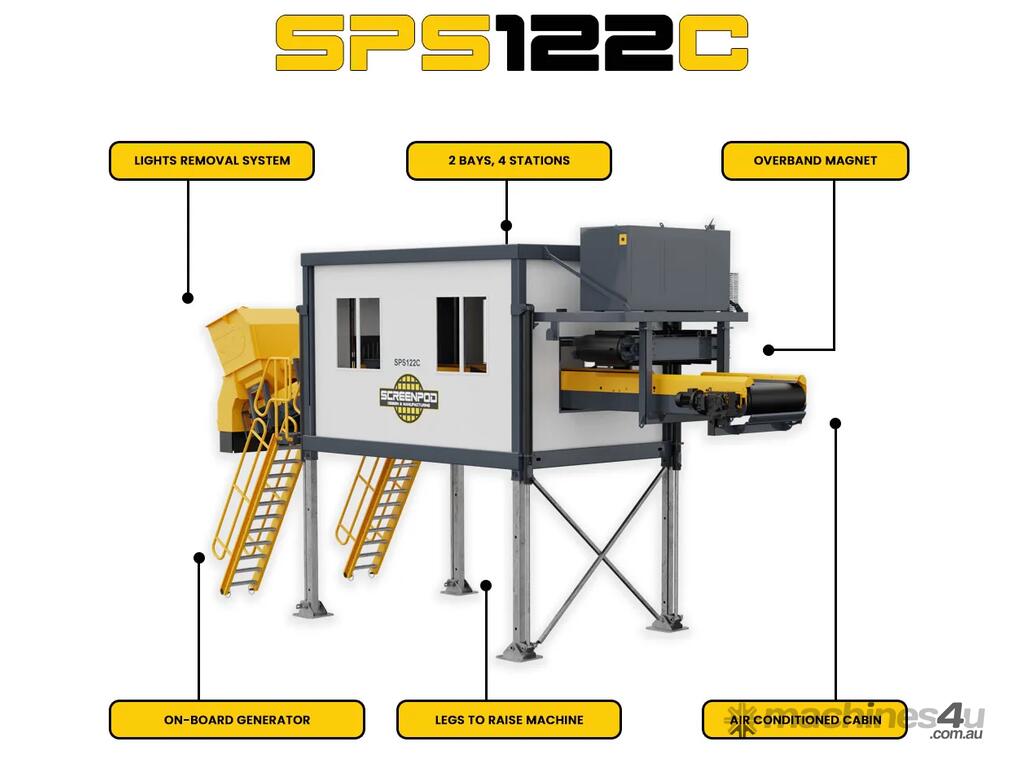 Offering an incredibly flexible solution from which a huge range of different materials can be processed, the Screenpod SPS122C static picking station provides an all-encompassing platform from which numerous different types of waste can be extracted from a given material waste stream, around any number of sites across a vast range of applications, all from the safety of the on-board, air-conditioned cabin.