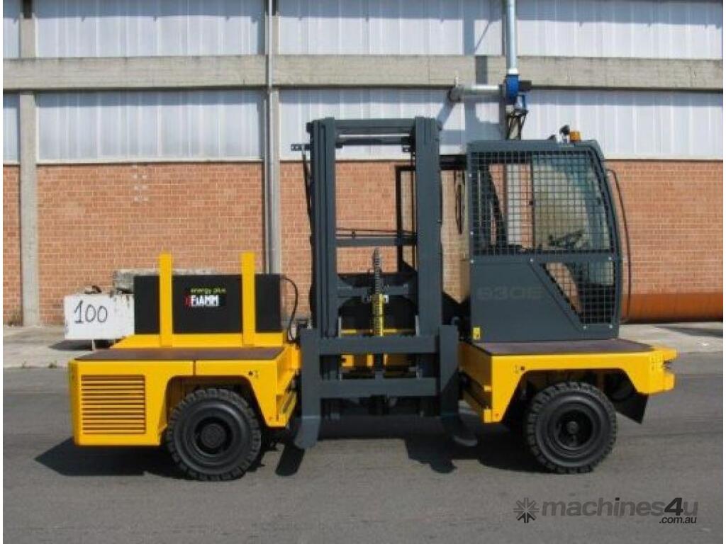 The electronic side loader model SLE30 is equipped with superelastic tires for driving and handling materials indoor and also outdoor in yards over even and uneven grounds. Thanks to the speed, strength and reduced dimensions in relation to the lifting Capacity: the SLE50 can be utilised both in outside operating areas or in inside storage warehouses.