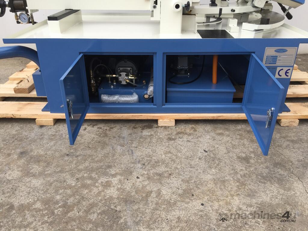 Steelmaster Industrial's line of metal cutting Band Saws offers customers many choices to best fit their needs. With two styles to chose from horizontal band saw and vertical bandsaws, customers will always find the right saw at the right price. Our bandsaws are built using only the highest quality design and components that allows for some of the tightest cut tolerances and fastest cut times in the industry. The tight tolerances, and fast cut rates make these a real profit maker for any manufacturing setting. Steelmaster offer our bandsaws from the smaller hydraulic downfeed horizontal models, through to the heavy industrial, twin column machines for the heavy industrial metalworker.