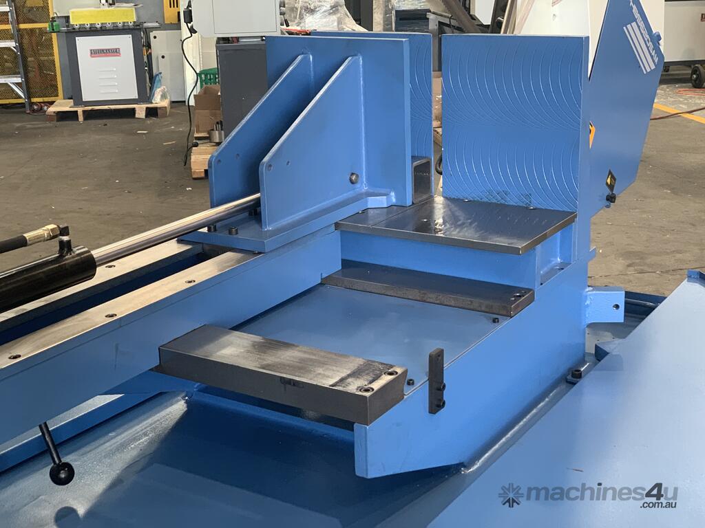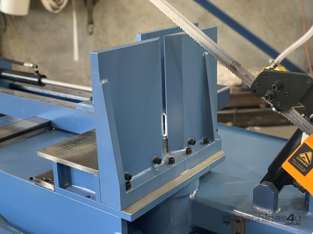 This large capacity semi automatic full featured Metal-Cutting Bandsaw includes a swivel head to cut miters from -45 degrees to +60 degrees, hydraulic clamping, variable speed control, hydraulic feed control and built-in coolant system. If you're looking for something in this size range, you'll have a tough time finding a better metal-cutting band saw with these features and at this price anywhere else. If your a Metalworking jobbing or a production shop you should take a good look at this!
