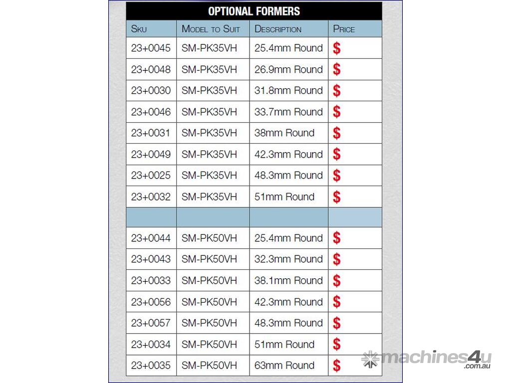 Set round tube / pipe formers to suit SM-PK50VH