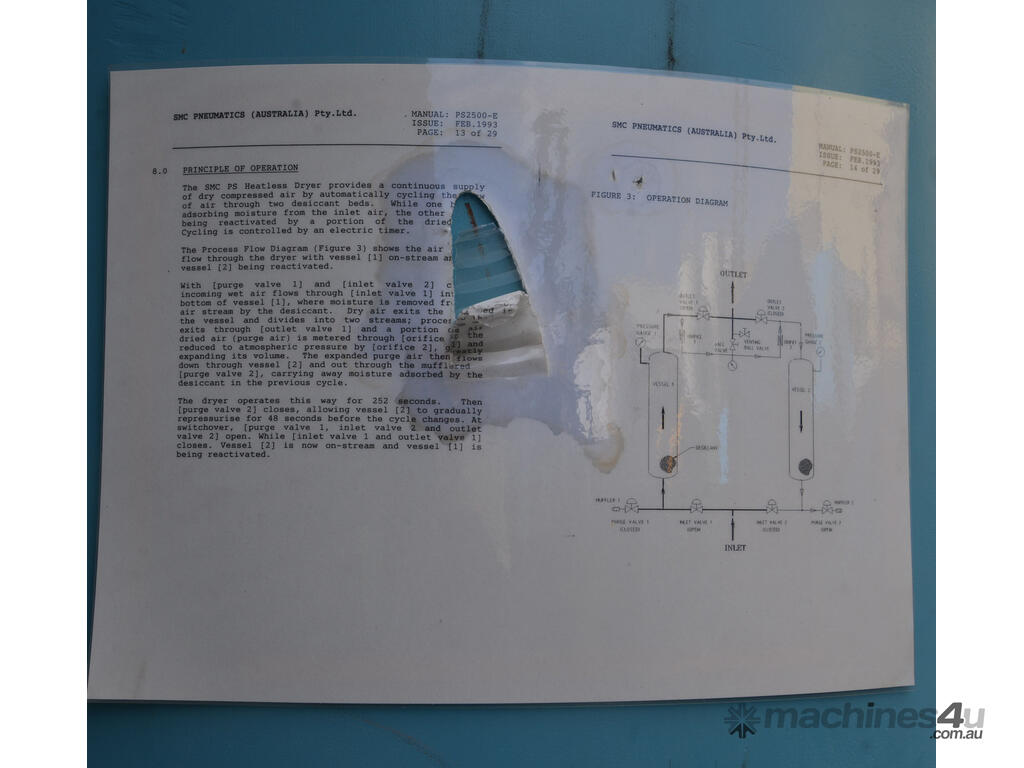 SMC PS2500-E heatless desiccant compressed air drier system regeneration 4" ports.