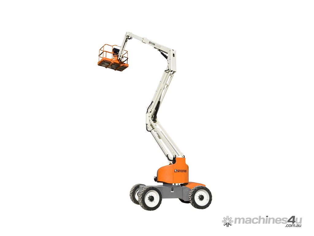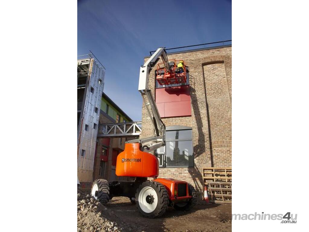The class-leading Snorkel A46JRT articulating boom lift delivers precise reach and powerful rough terrain performance. Its up-and-over capabilities provide exceptional maneuverability with an articulated jib as standard for extended reach. A tight turning radius and zero tailswing makes the A46JRT a flexible and versatile machine for hard-to-reach places.