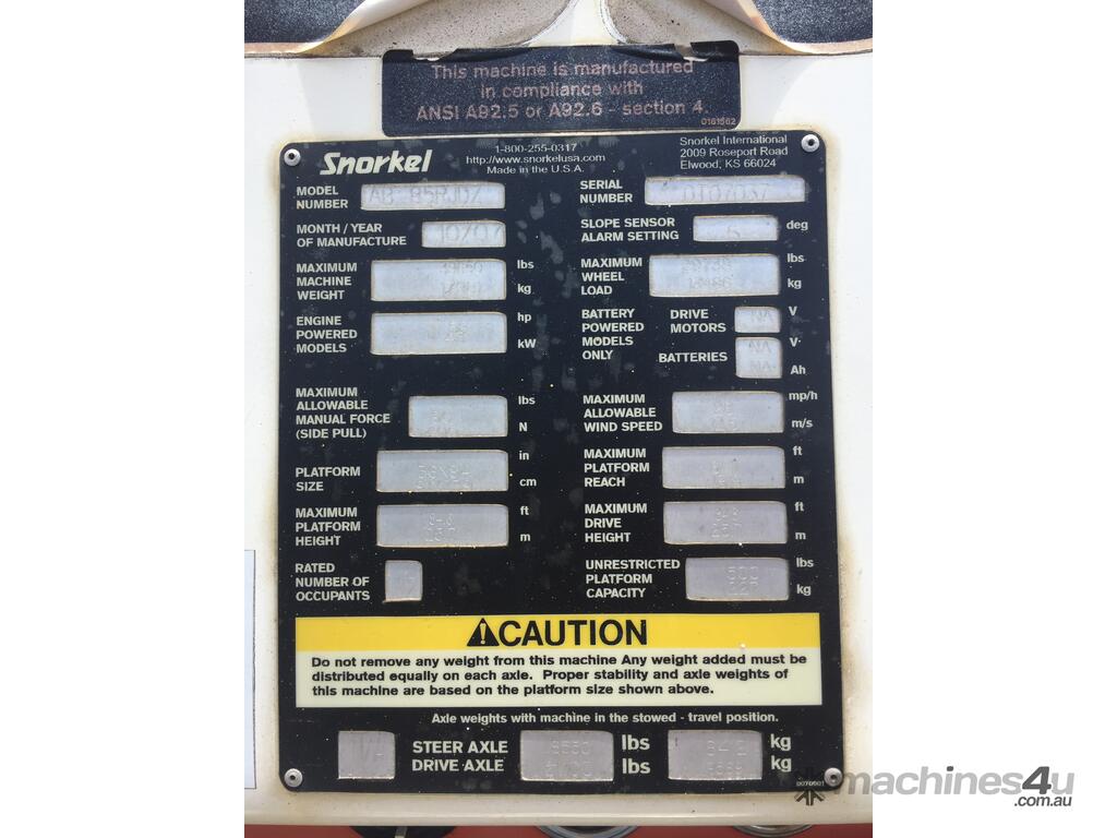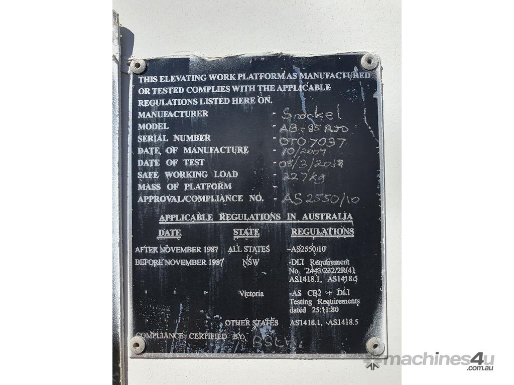 This machine is very reliable and still working as part of a hire fleet. 10 year re certification has recently been carried out by the manufacture at a cost of $25,000. Batteries are in very good condition.