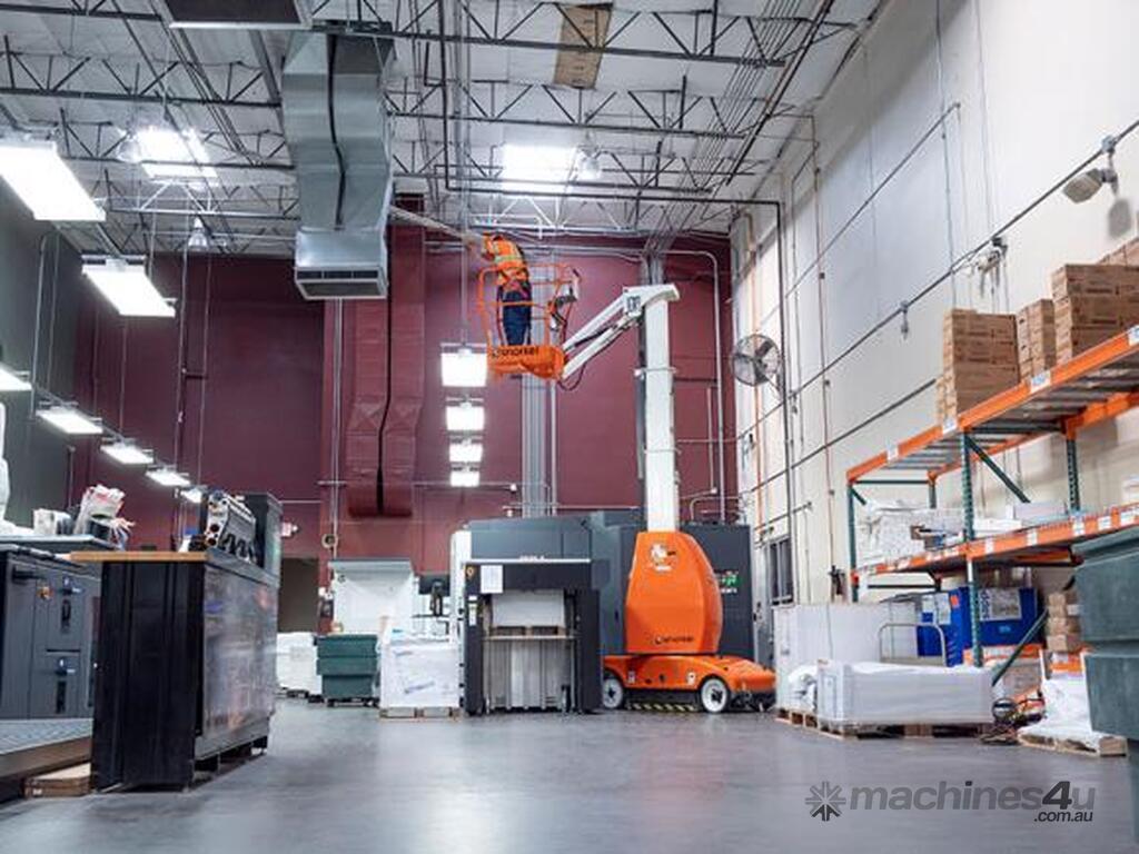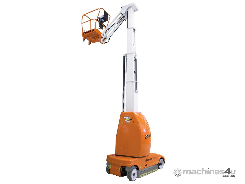 The Snorkel MB20J is a self-propelled electric mast boom lift equipped with a jib boom. Its ultra-narrow design is ideal for compact spaces that require up-and-over capabilities. Suitable for both indoor and outdoor applications, the MB20J features non-marking tires as standard.