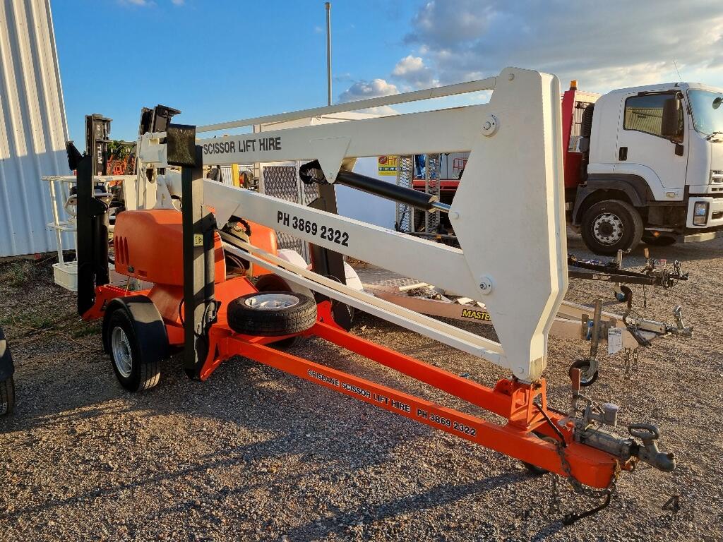 Trailer mounted cherry picker in excellent condition. Recently professionally repainted and recently re-certified.