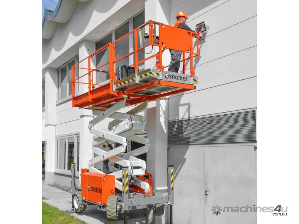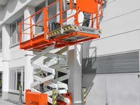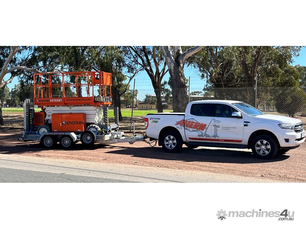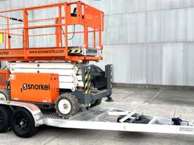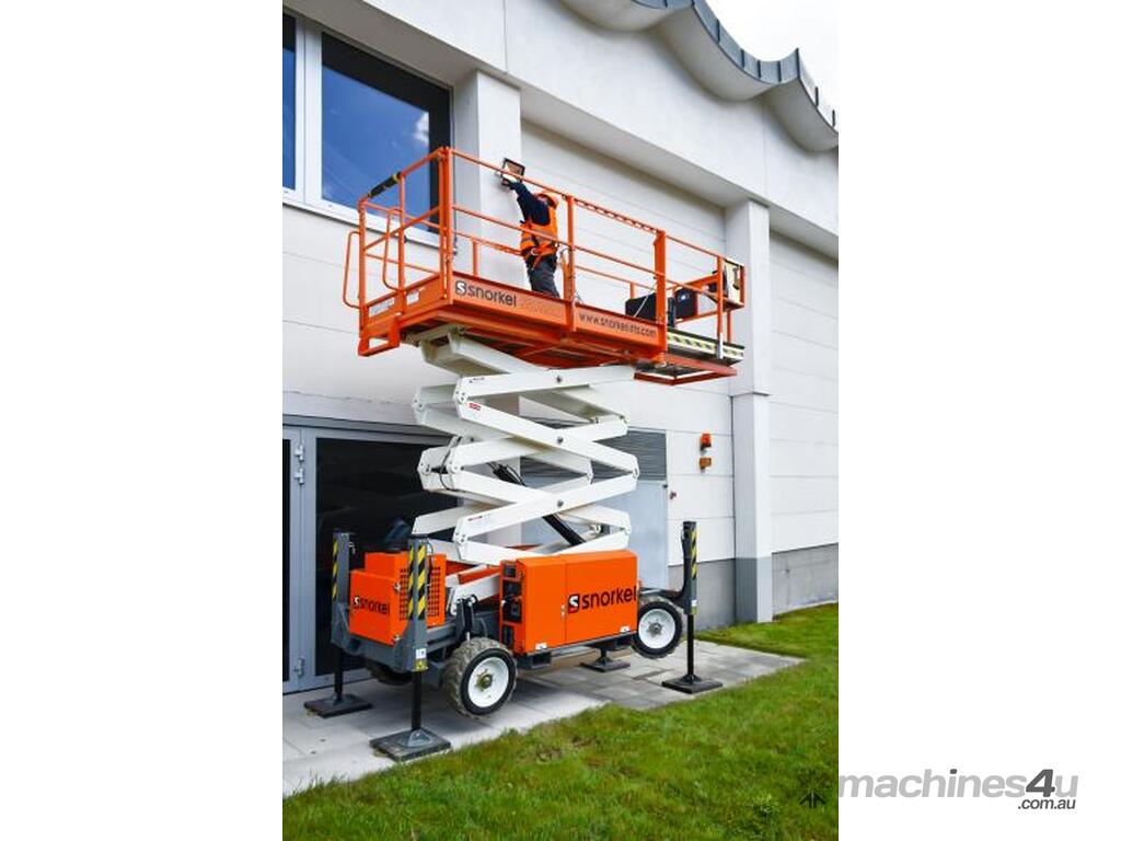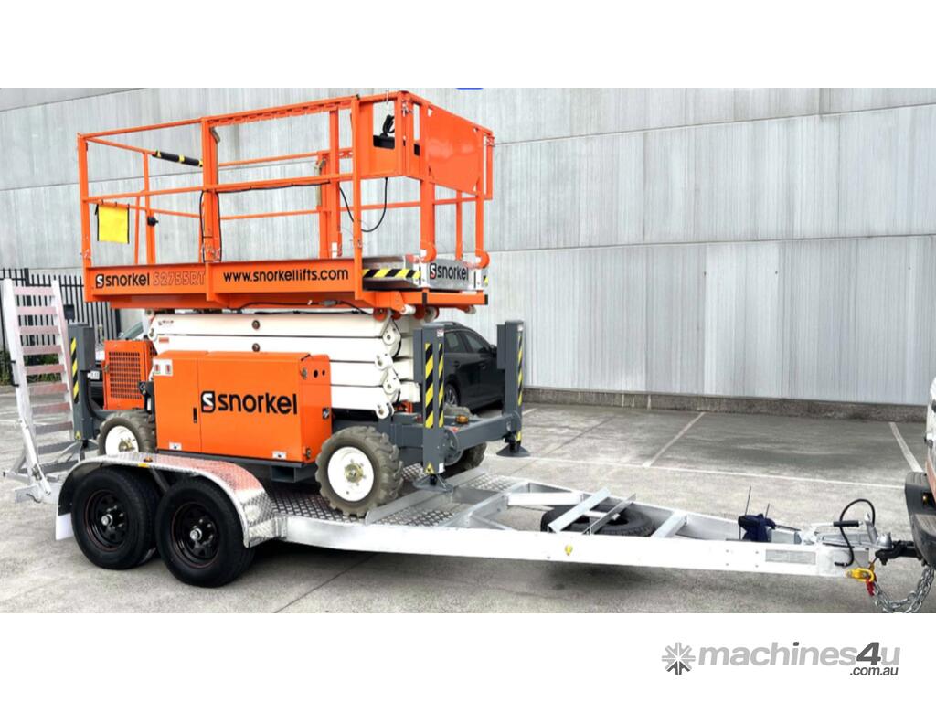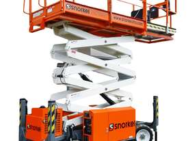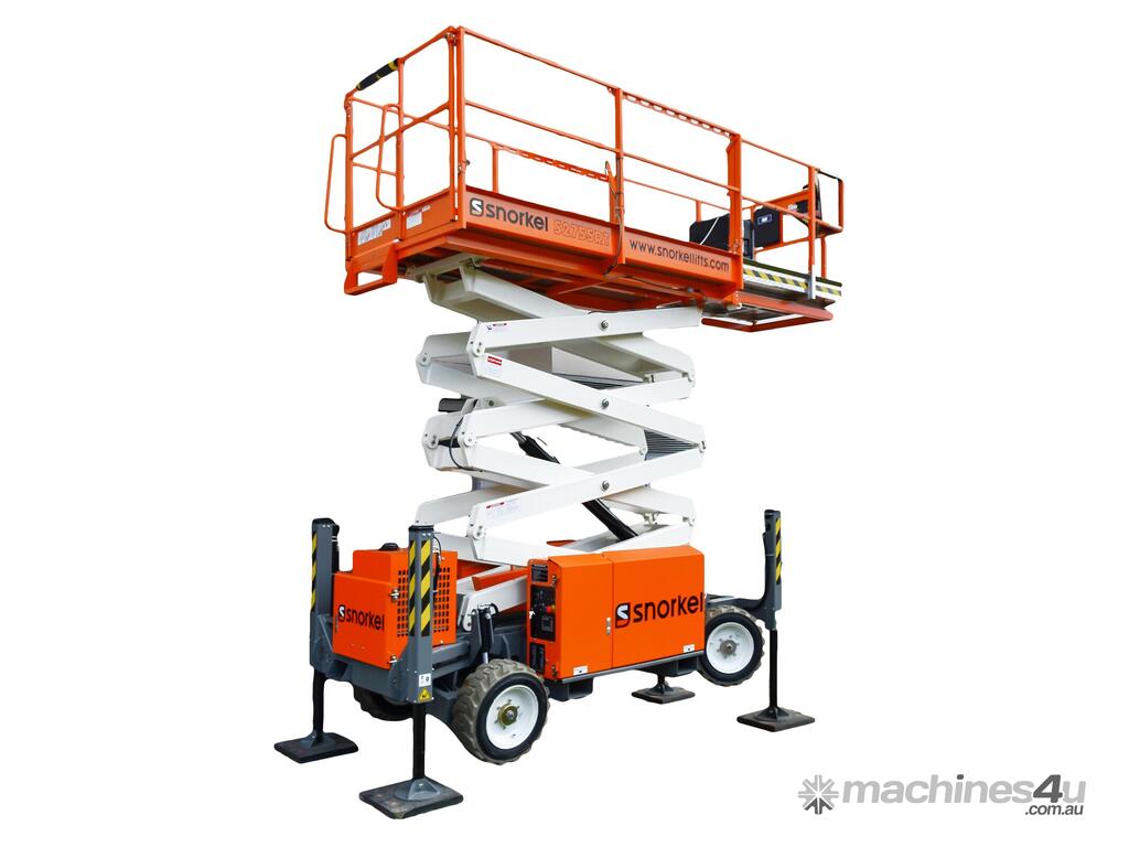 The Snorkel S2755RT narrow scissor lift is designed to be ultra-compact for outdoor work in confined spaces. Designed to deliver excellent off-road performance, this diesel-powered rough terrain scissor lift tackles all types of terrains with ease. Equipped with hydraulic outriggers as standard, the S2755RT features automatic leveling on uneven ground. Also designed with narrow dimensions, the scissor lift is easily towed on a trailer by a car or commercial vehicle between jobs.