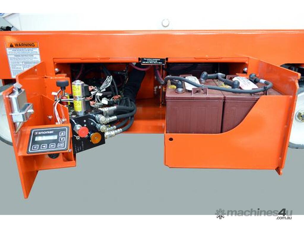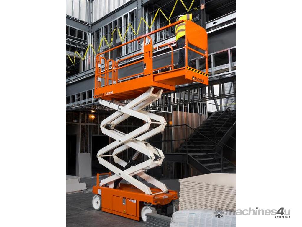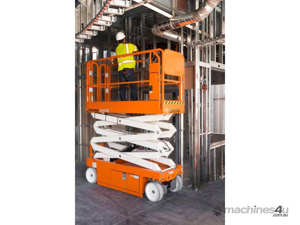 The Snorkel S3220E electric scissor lift features deep cycle batteries, a high lift capacity, and a robust all-steel construction. Designed for a long working life, the S3220E delivers low total ownership costs. Equipped with a telescopic roll-out deck extension and proportional controls, including descent, this lift offers complete on-the-job versatility.