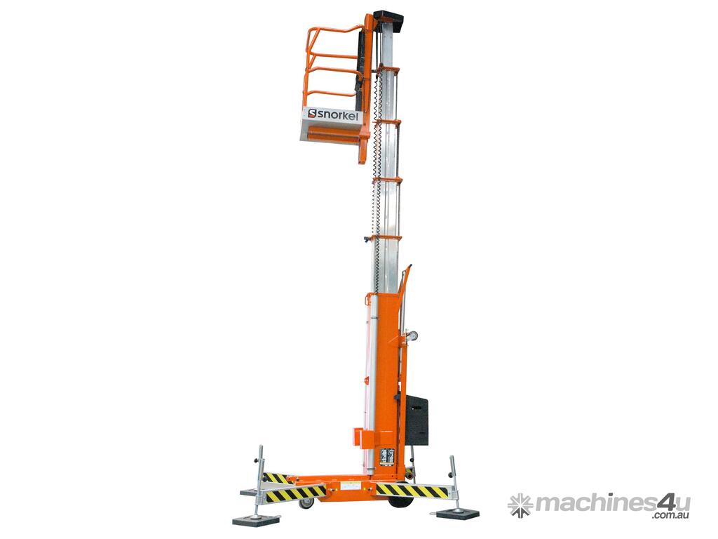 The Snorkel UL25 push-around mast lift is a lightweight and low cost indoor work platform. Designed with a small footprint and outriggers as standard, one person can easily set up and operate the UL25 for quick access.