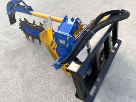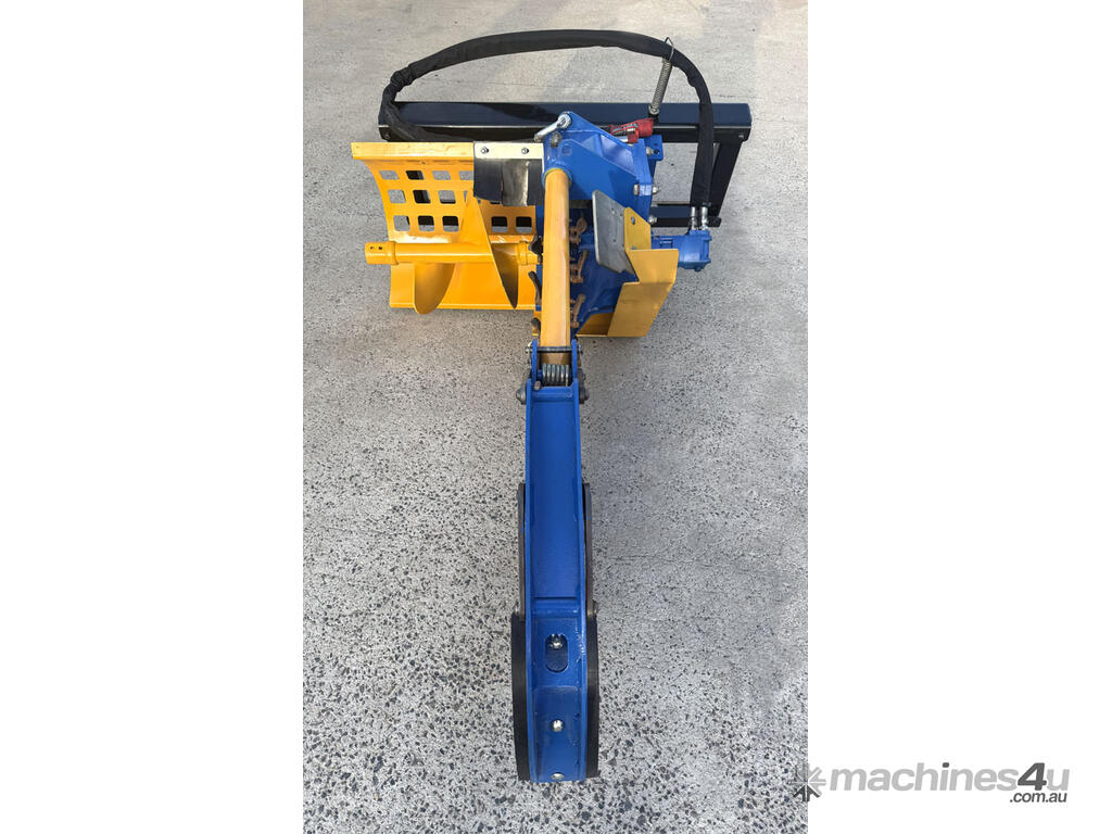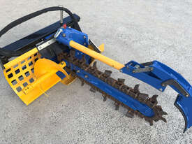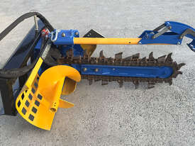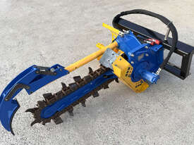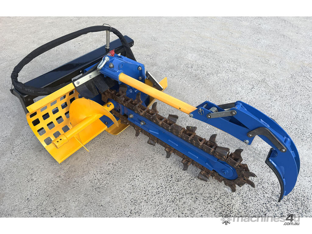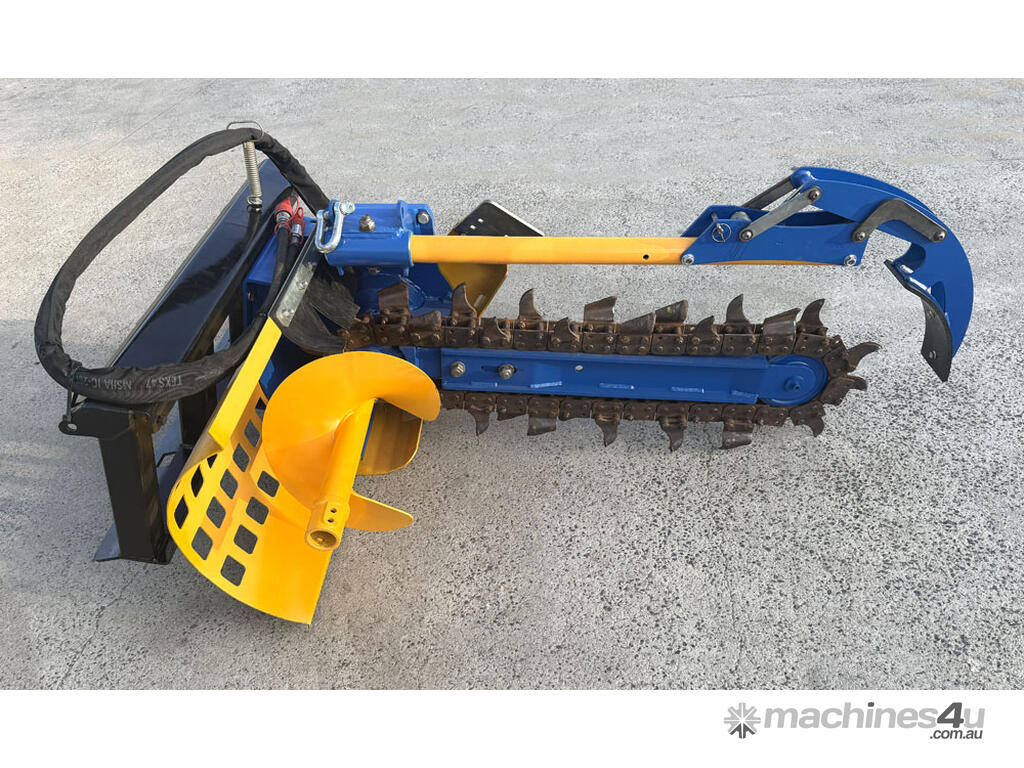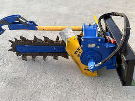 Auger Torque MT900 trencher with crumber bar for skid steers – excellent near new condition – flat-face couplers (can exchange for poppet couplers on request) – combination chain (tungsten rock and earth teeth) – 150mm cutting width – max cutting depth 900mm.