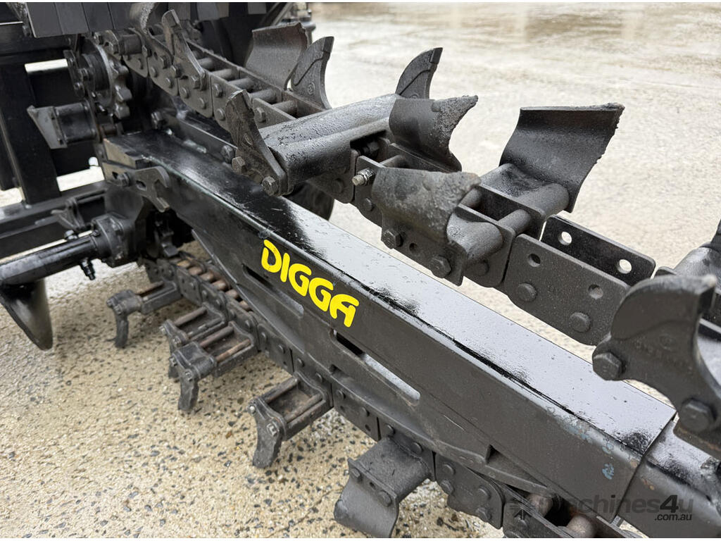 Digga Hi-drive trencher for mini skid steers – 900mm long bar – excellent condition (new) – supplied with crumber bar – flat-face couplers (swap to poppet couplers on request). Combination chain currently set to 300mm wide (can be reset to 150mm wide if required).