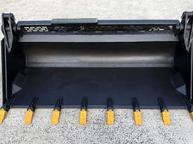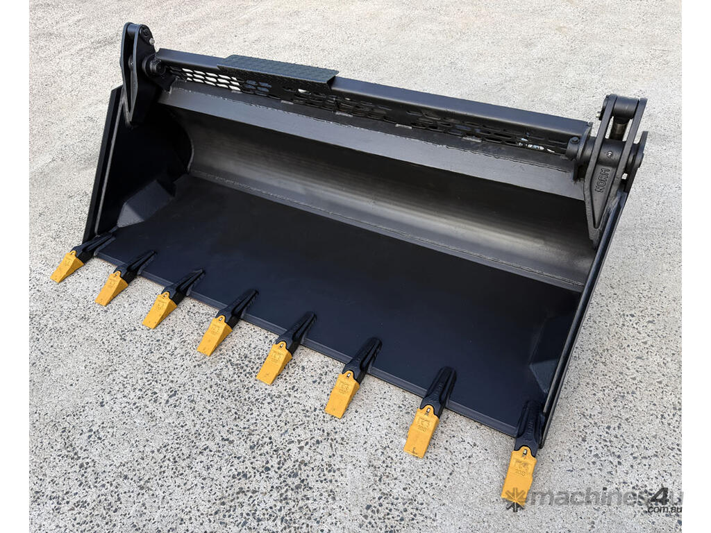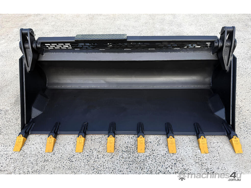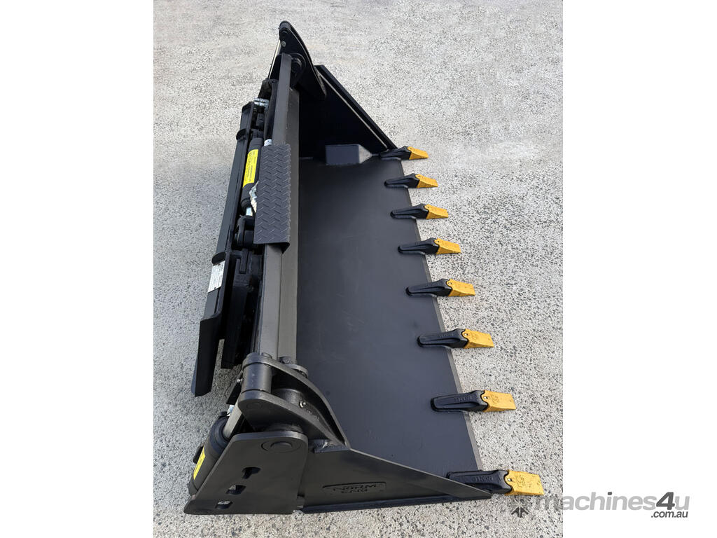 Norm Engineering tilting (crossflow) 4in1 bucket for skid steers – 1875mm wide – excellent condition – heavy duty 20mm BisAlloy floor – ESCO teeth x8 – flat-face couplers – 0.3m3 capacity – weight 601kg.