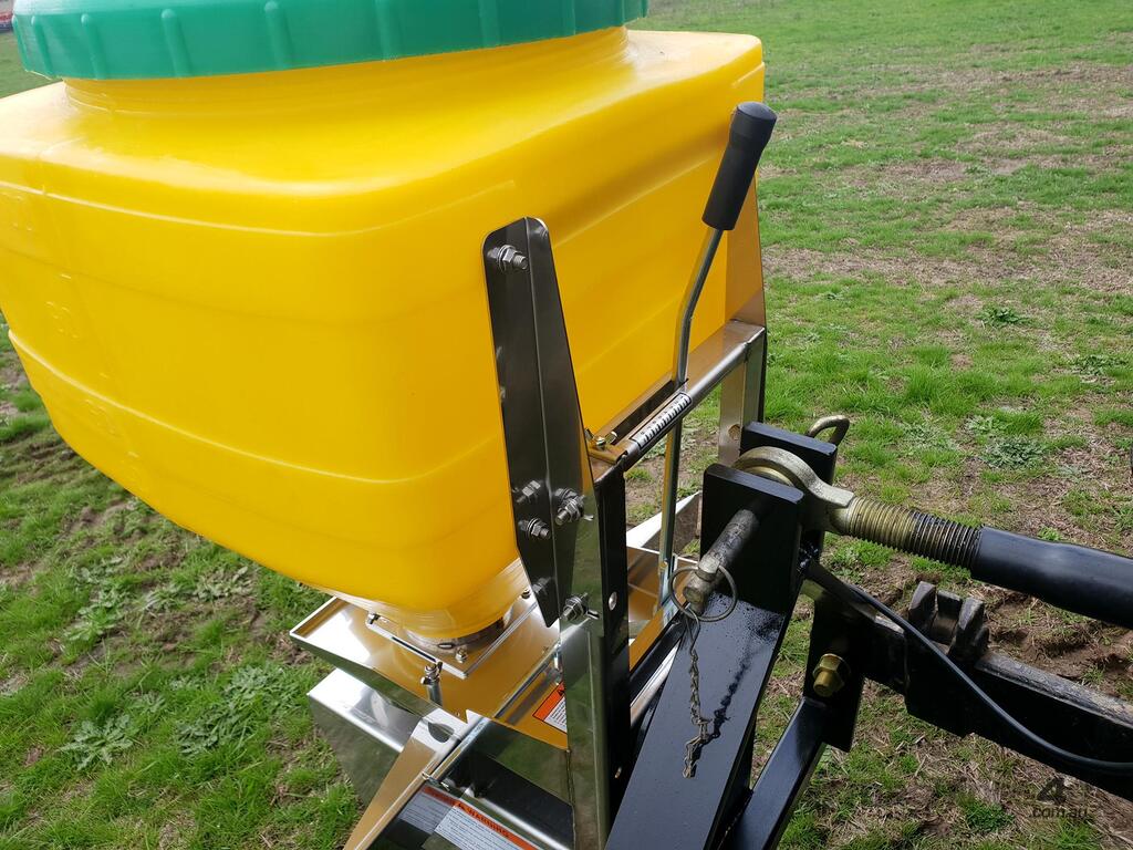 One thing that is hard to miss on this spreader is its bright yellow hopper that's made from hard, durable PE material. Depending on the model, the hopper can hold anywhere from 70L, 130L, or 180L of seeds, fertilizers, or bait pellets which the machine can disperse for at least 2 meters all the way to 22 meters maximum.