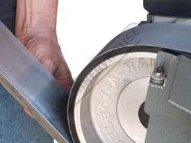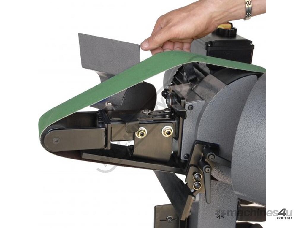 The only belt grinder that accurately and rigidly tracks the heaviest backed belts (essential in drill & cutter sharpening)