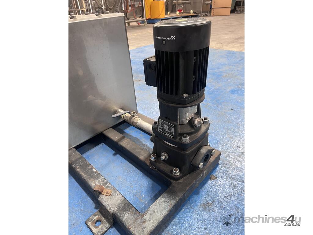 Stainless steel balance tank with new & unused Grundfos pump.