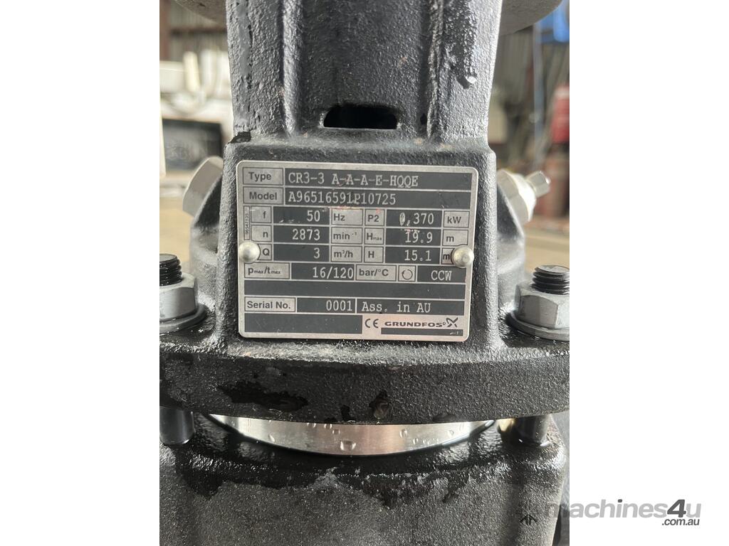 The Grundfos pump is a vertical, multistage centrifugal pump with suction and discharge ports on the same level. The pump head and base are in cast iron - all other wetted parts are in stainless steel.
