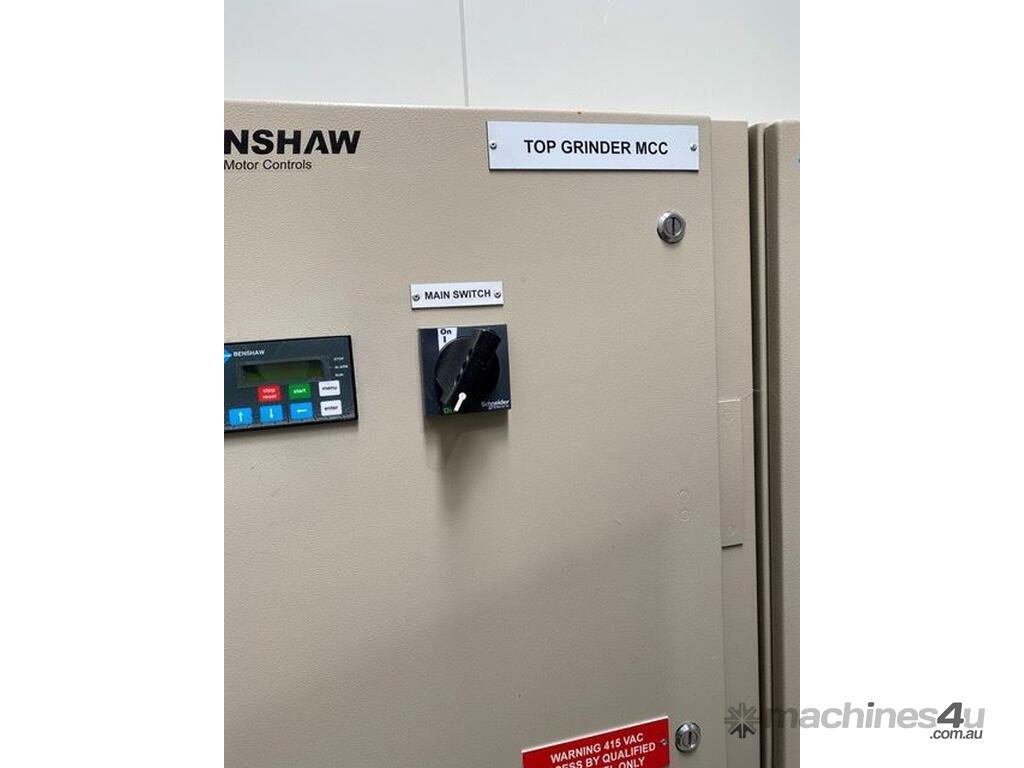The two hammer mills can be run into each other (dual stage) or run as just one, the lower one can slide out of the way and it can be run as a single stage mill.