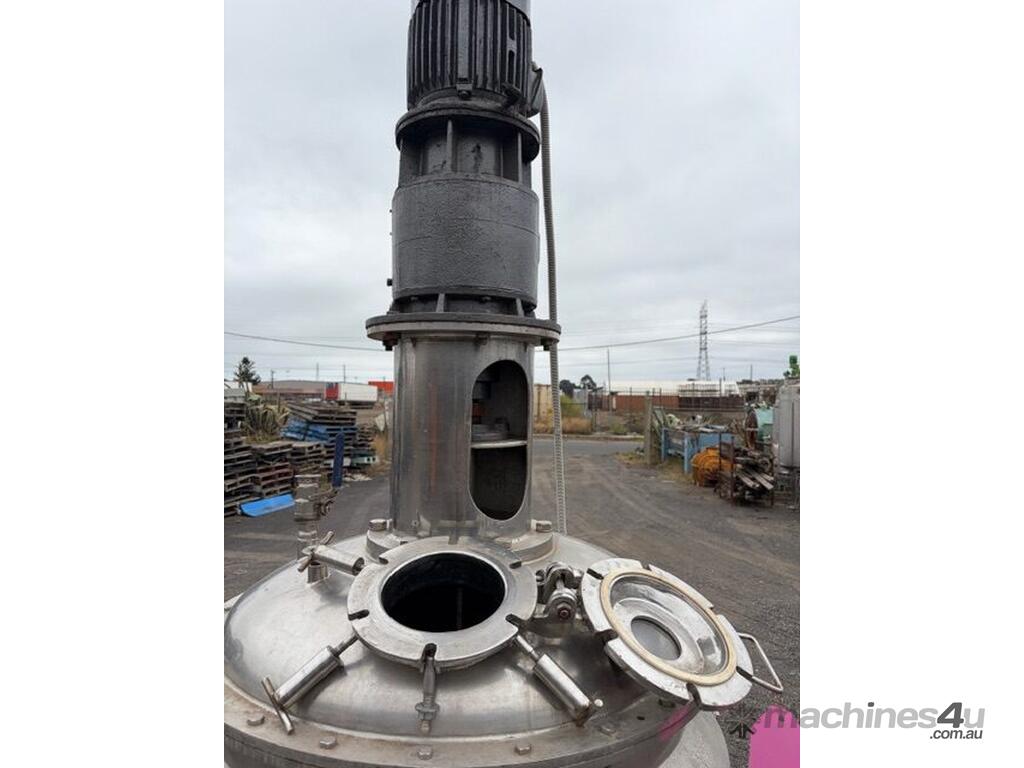 Powered by a 5HP, 415V drive system operating at 36 RPM, providing reliable and consistent agitation. The vessel features multiple process ports on the top for filling, venting, and instrumentation, along with a bottom discharge outlet for efficient product removal.