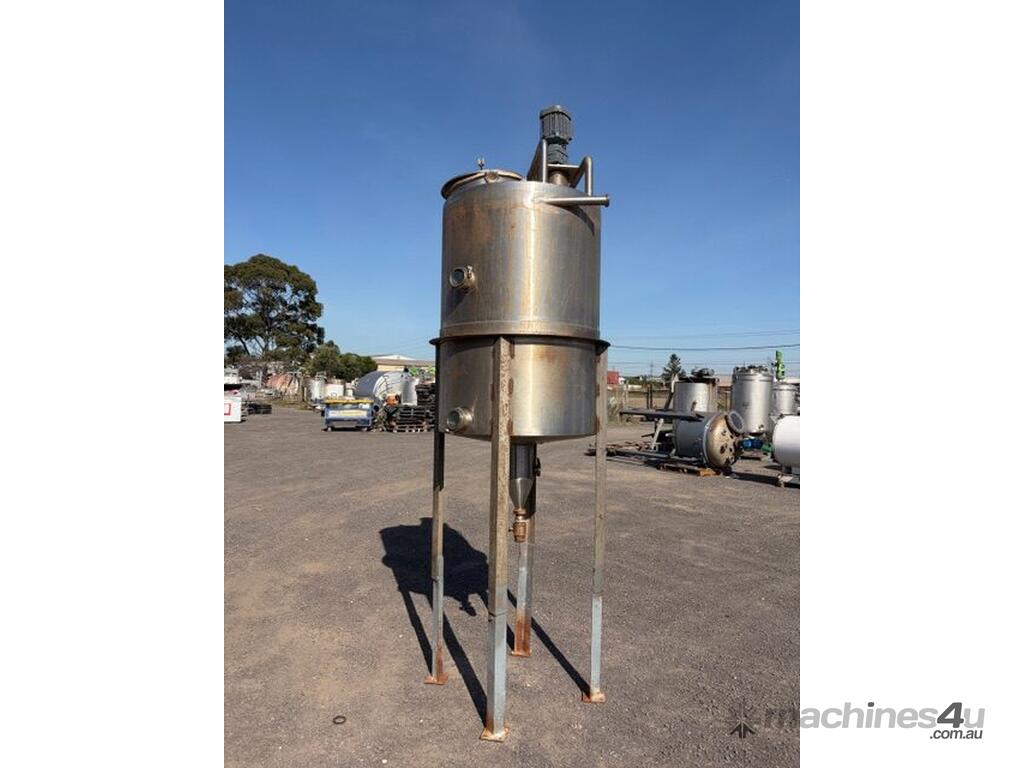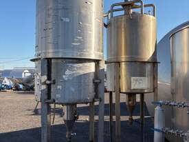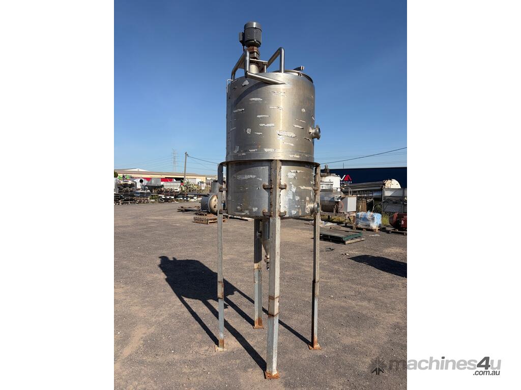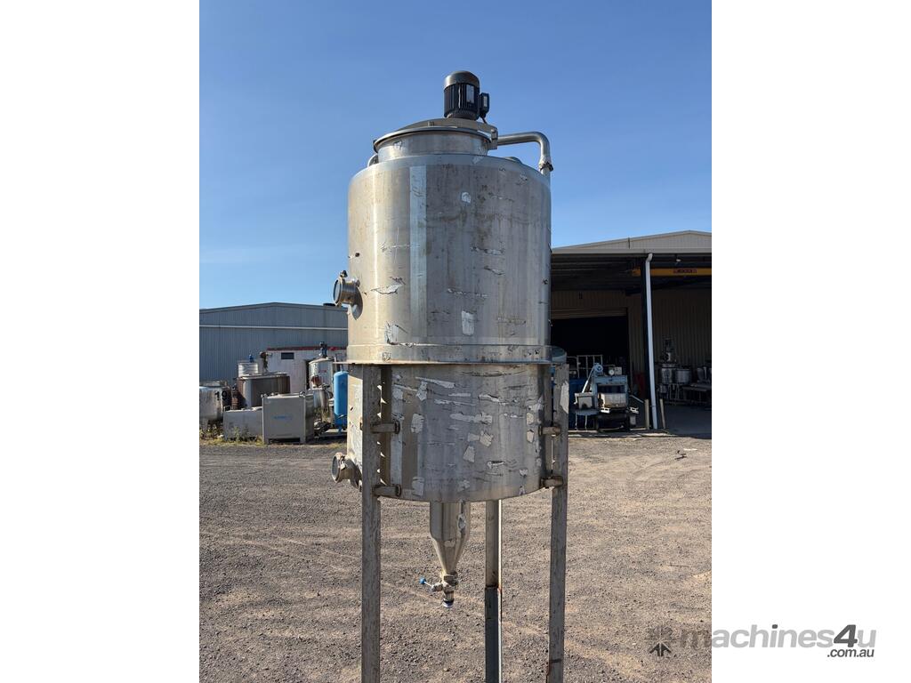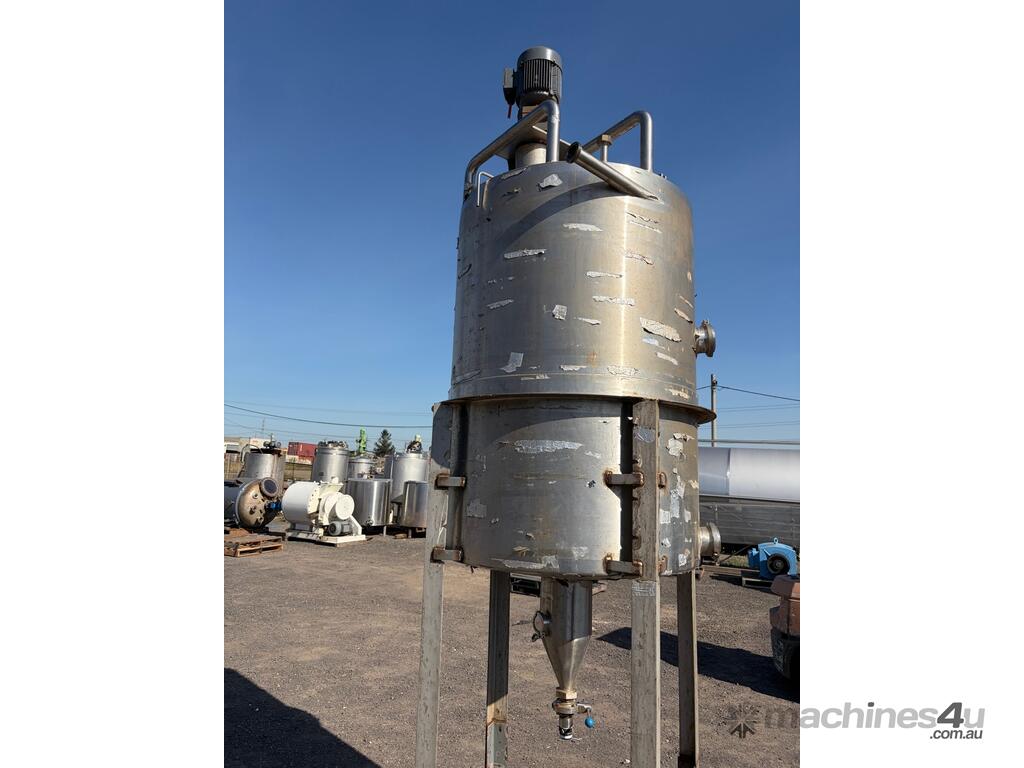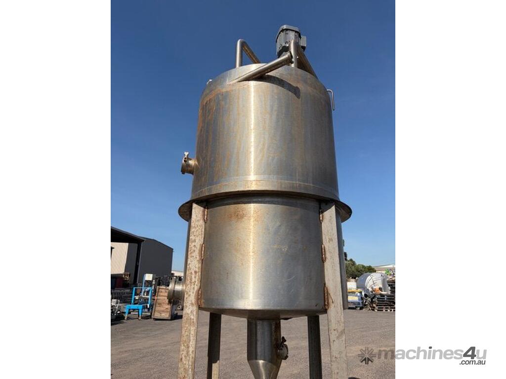 Stainless steel vertical mixing tank with an approximate capacity of 1,000 litres, suitable for food, beverage, and general liquid processing applications.