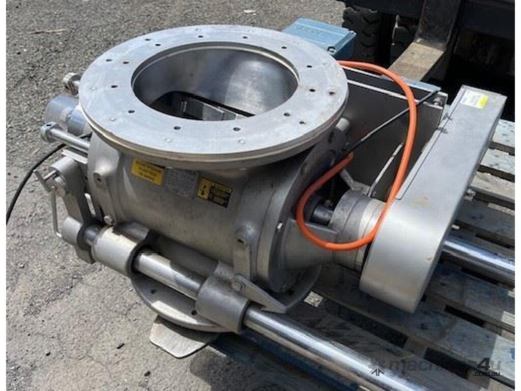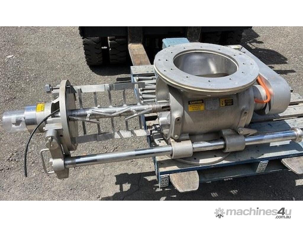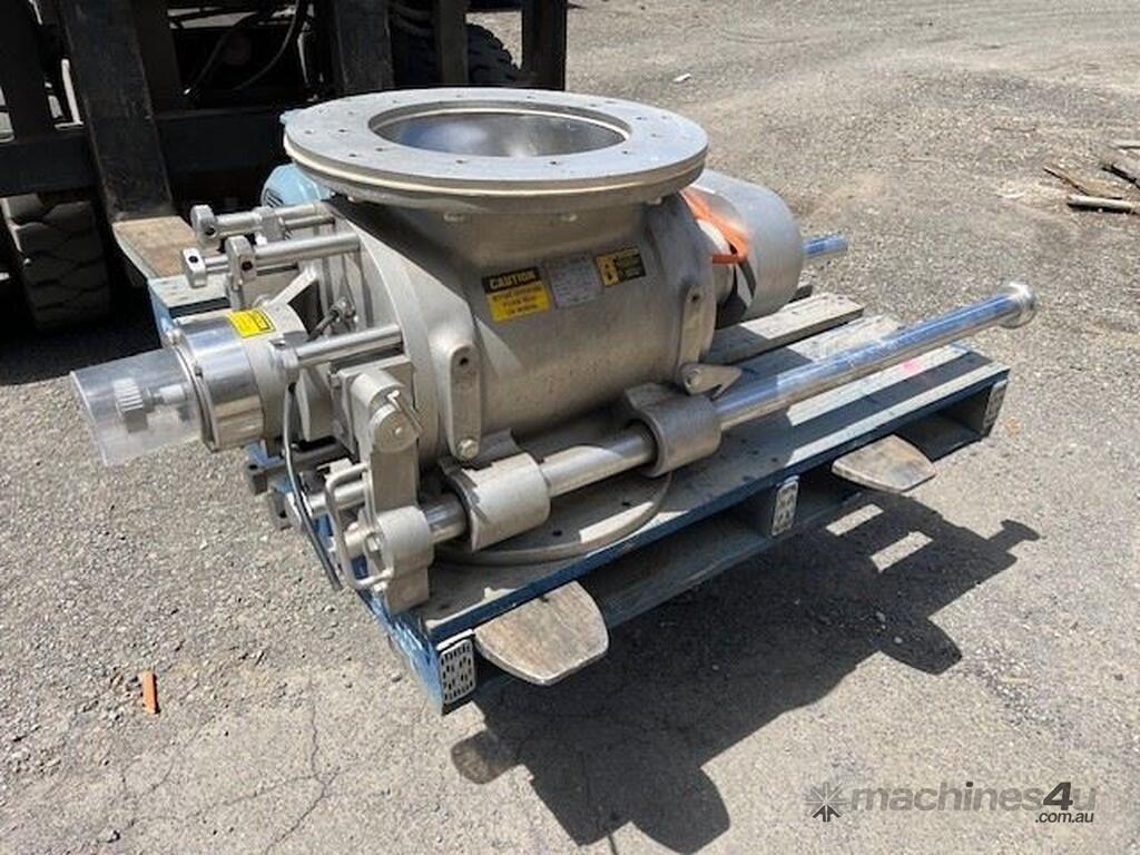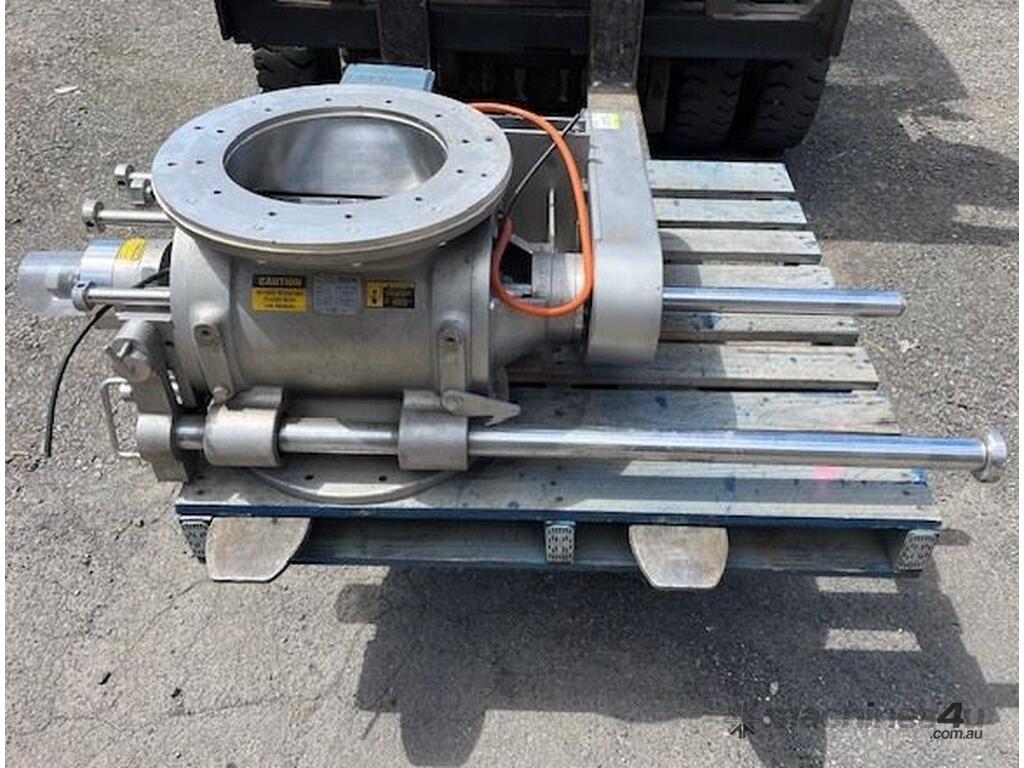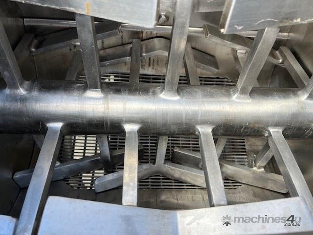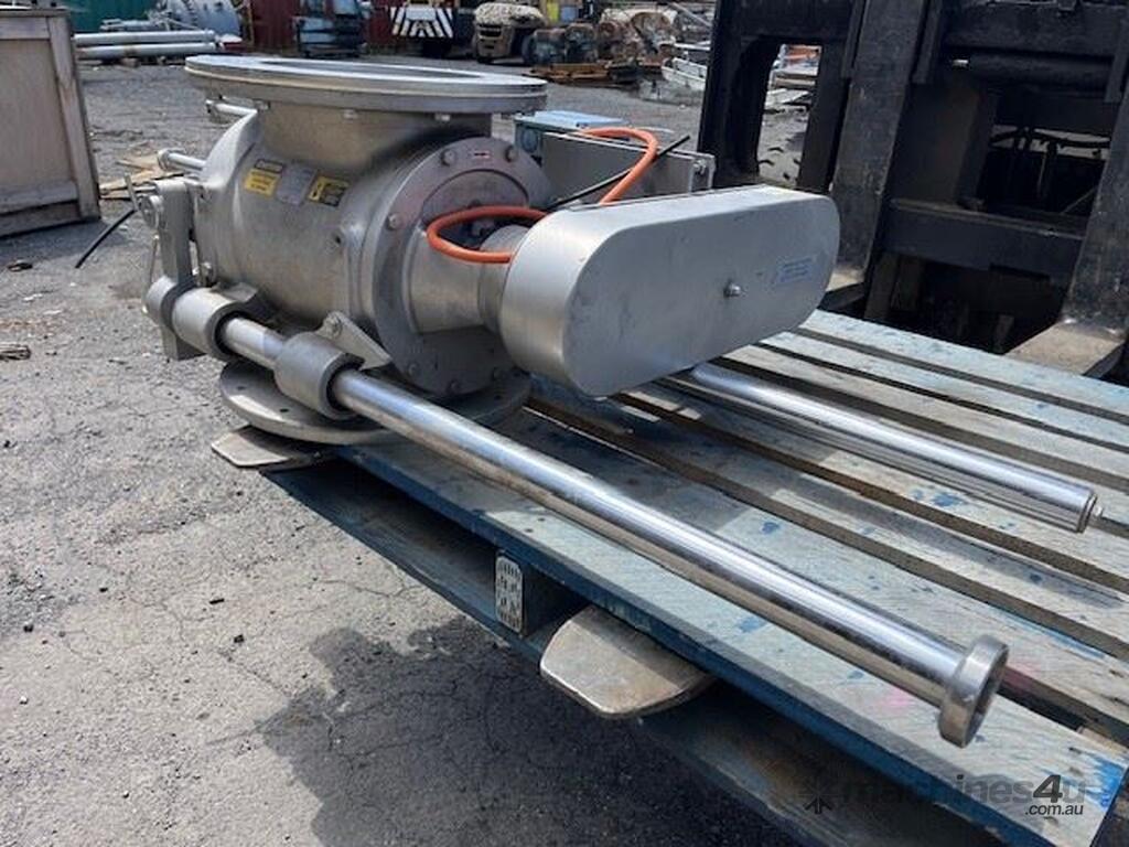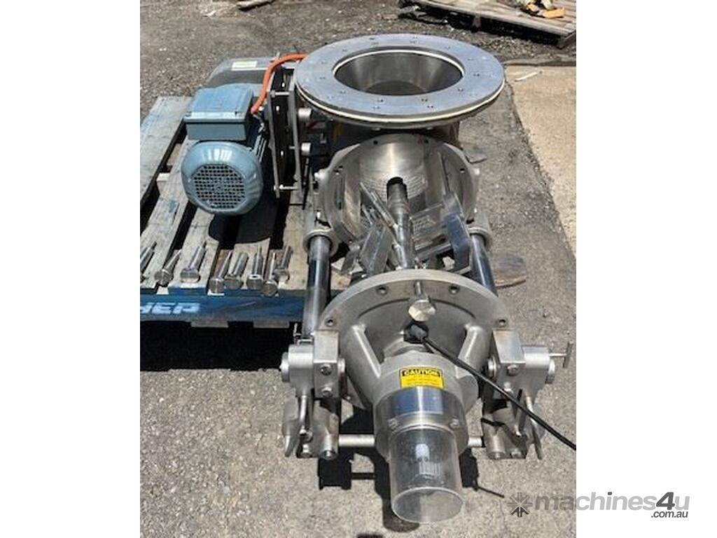 Inline stainless steel sanitary lump breaker. Designed to be mounted above or below a blender to remove lumps in powders. The paddles mix and push the powder down through the 3 mm wedgewire screen to remove any lumps in the powder. Easy clean system which the whole rotor assembly can be removed for cleaning in place. Complete with air purged seals. SEW geared drive 2.2kw 179 rpm. 300mm inlet and outlet dia. Made in NZ Year 2013 2 available. Price per unit.