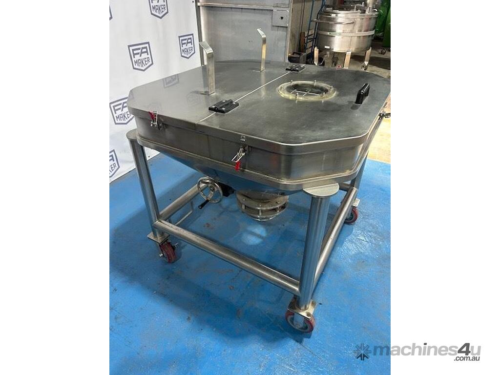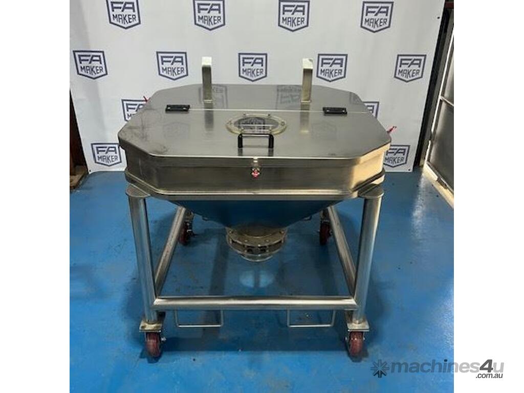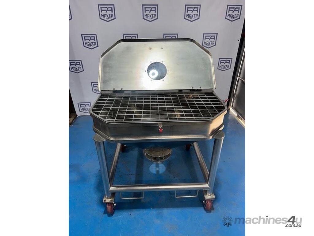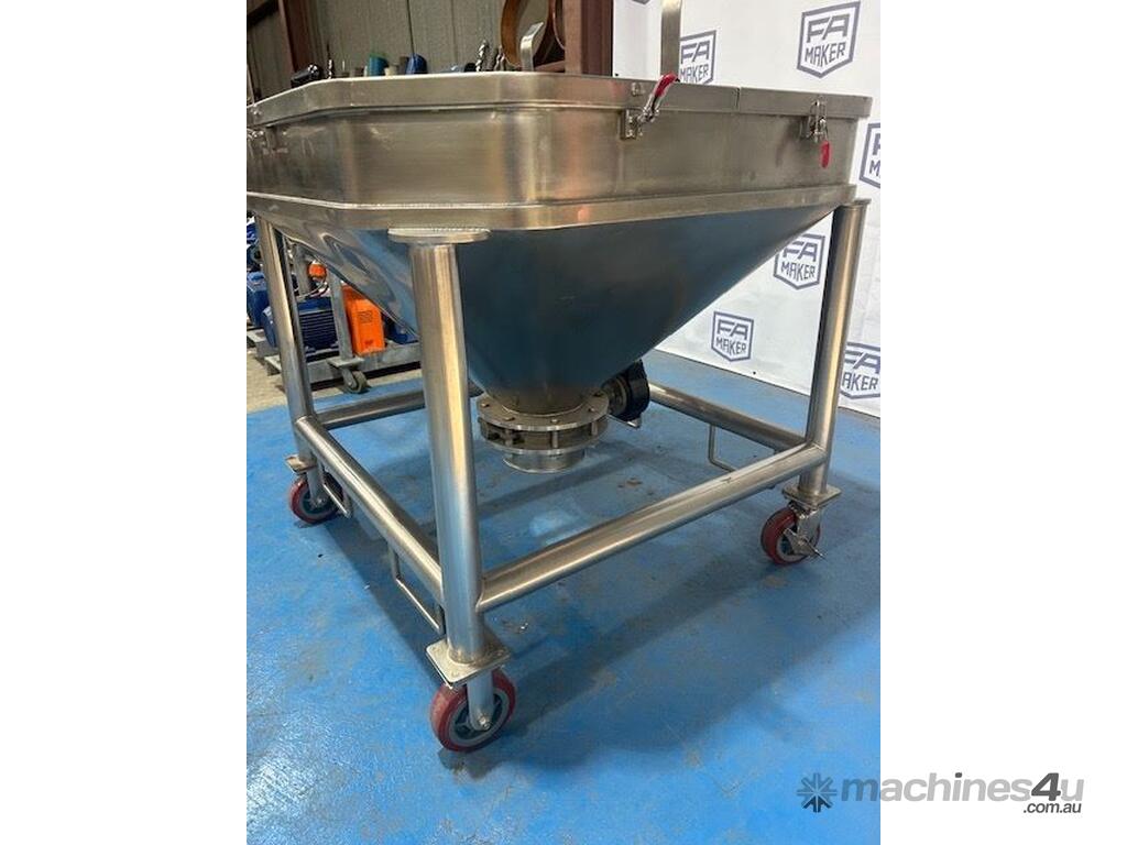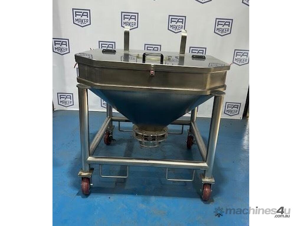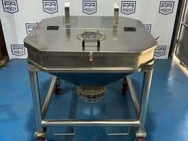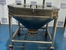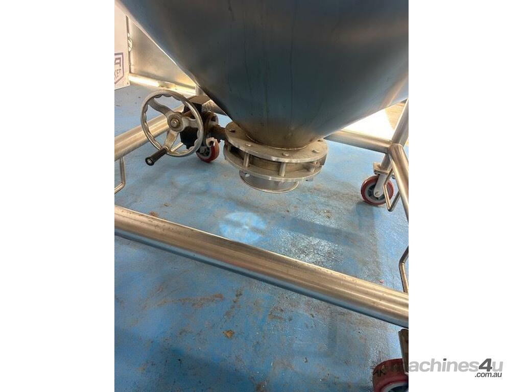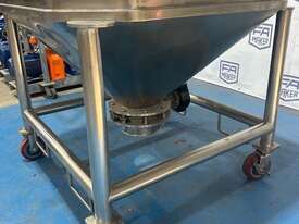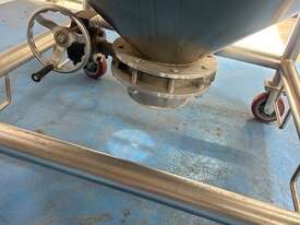 Stainless Steel portable storage hopper, conical discharge with butterfly valve outlet.
