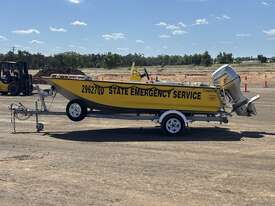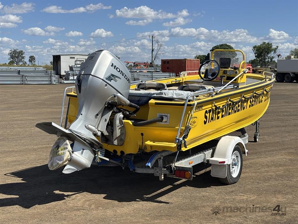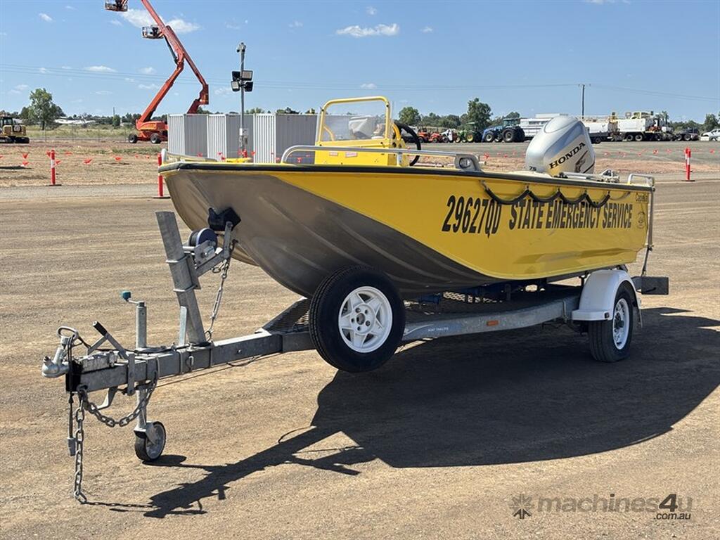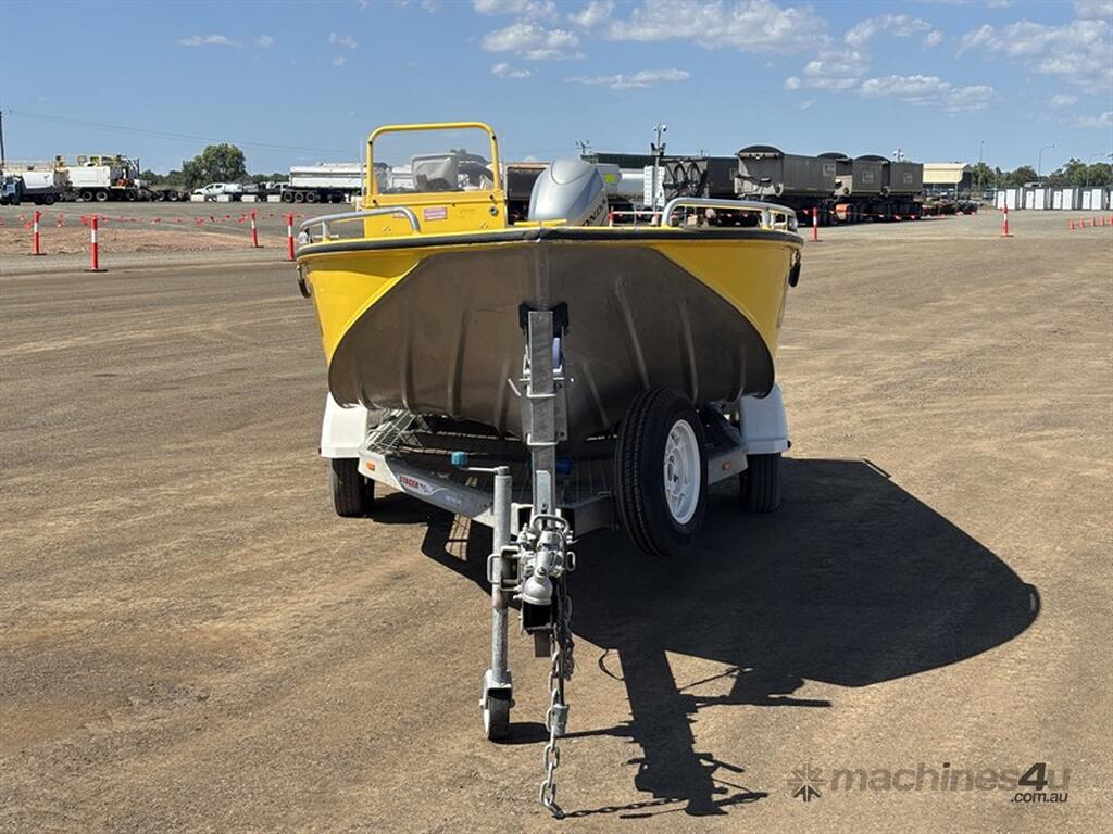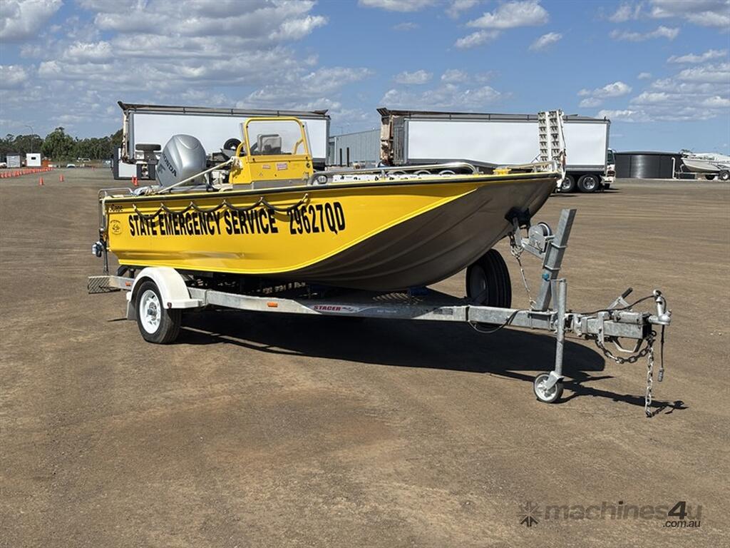 STACER BARRA PRO BOAT AND TRAILER, HIN: AU-TRX14570D909, TRAILER VIN: CHWB0ATRL9C805494, 213 HOURS SHOWING, NO REGISTRATION, NO RWC. LOCATION: HALFERTY STREET, EMERALD, QLD 4720. INSPECTIONS & COLLECTIONS: MONDAY TO FRIDAY, 8AM TO 4PM. ENQUIRIES: JOHN MCDOUGALL ON OR JOHNEMERALDAUCTIONCENTRE