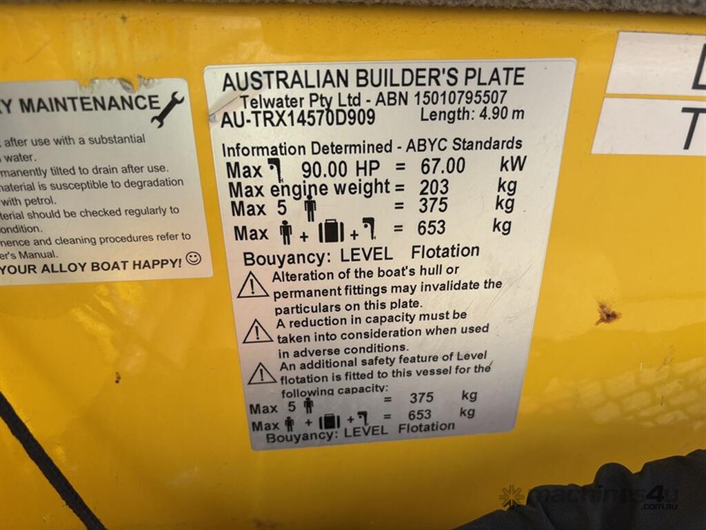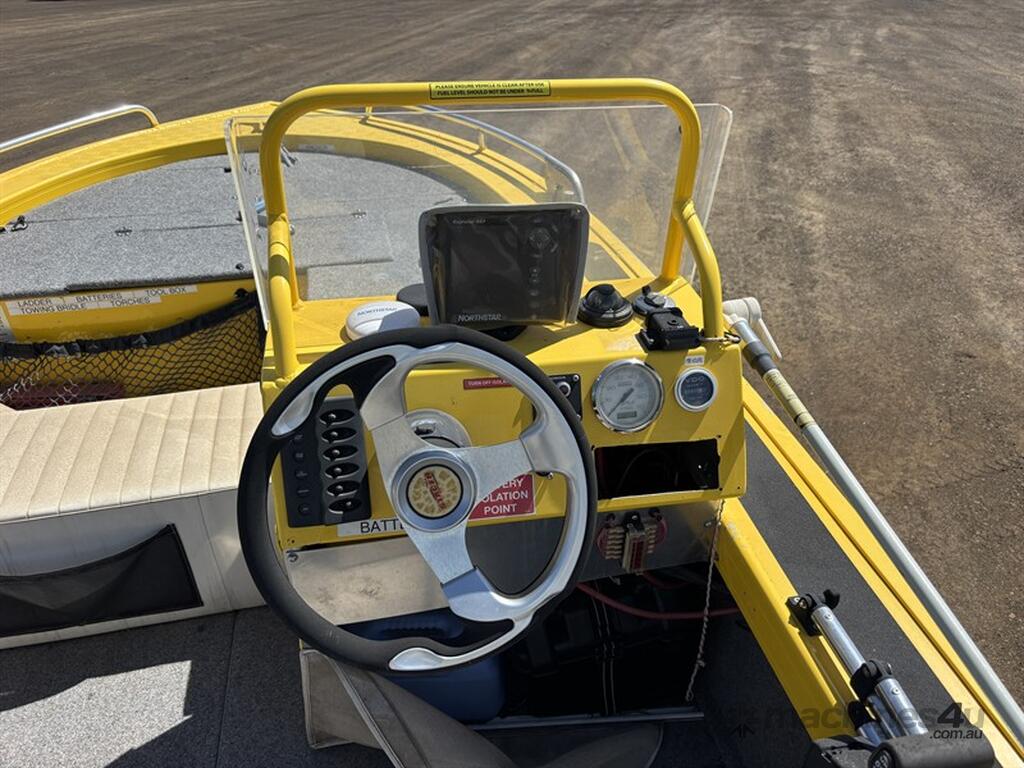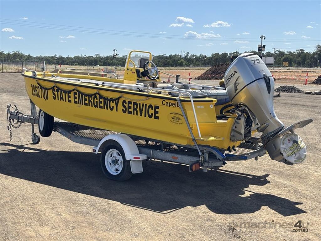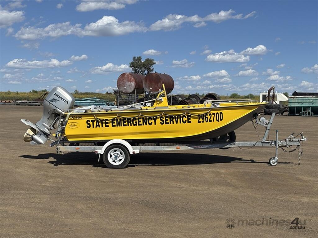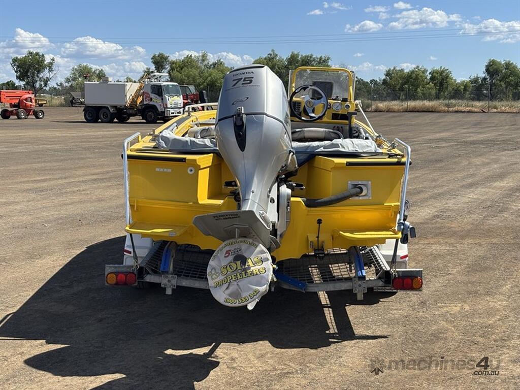 STACER BARRA PRO BOAT AND TRAILER, HIN: AU-TRX14570D909, TRAILER VIN: CHWB0ATRL9C805494, 213 HOURS SHOWING, NO REGISTRATION, NO RWC. LOCATION: HALFERTY STREET, EMERALD, QLD 4720. INSPECTIONS & COLLECTIONS: MONDAY TO FRIDAY, 8AM TO 4PM. ENQUIRIES: JOHN MCDOUGALL ON OR JOHNEMERALDAUCTIONCENTRE