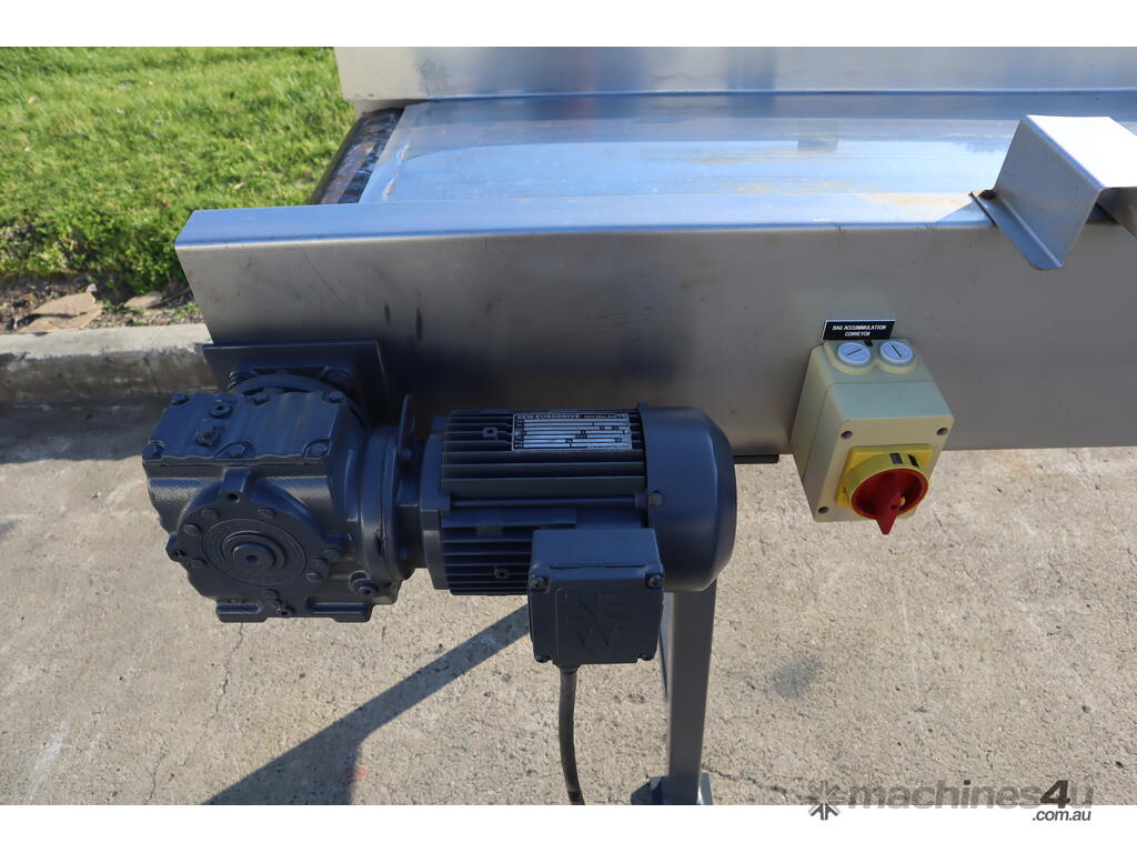 It is powered by a 3 Phase motor and has a slight incline.