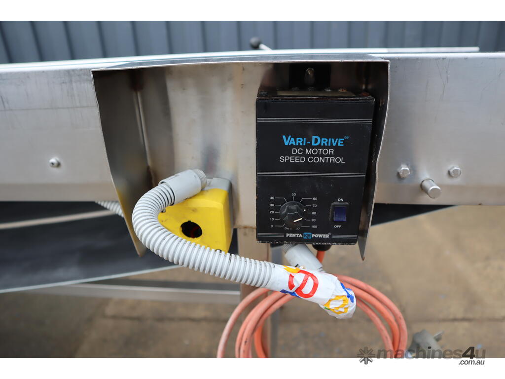 It has a variable speed controller built on and has a lever to adjust the belt tension.