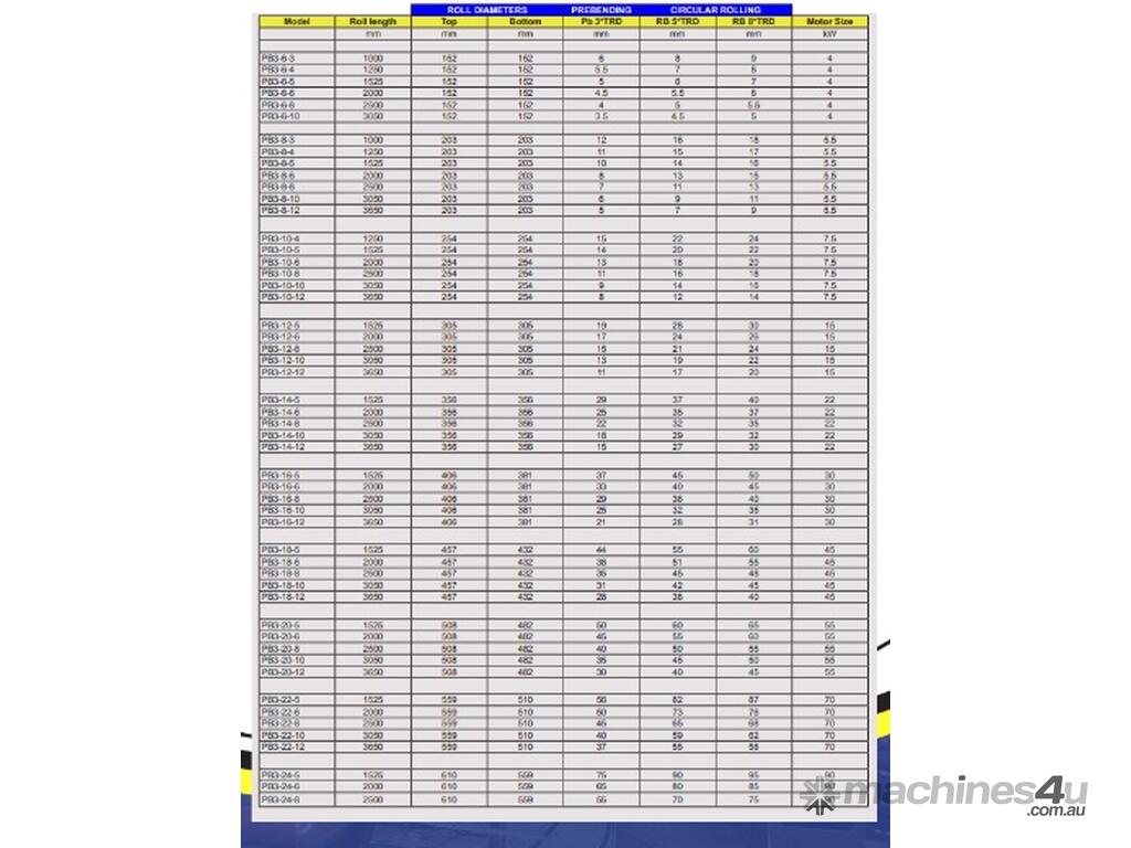The SB3B has a pre-bending capacity from 3mm to 70mm and is literally the strongest 3 roll machine ever made. We guarantee the highest pre-bending power and drive torque compared to all other similar sized machines on the market.