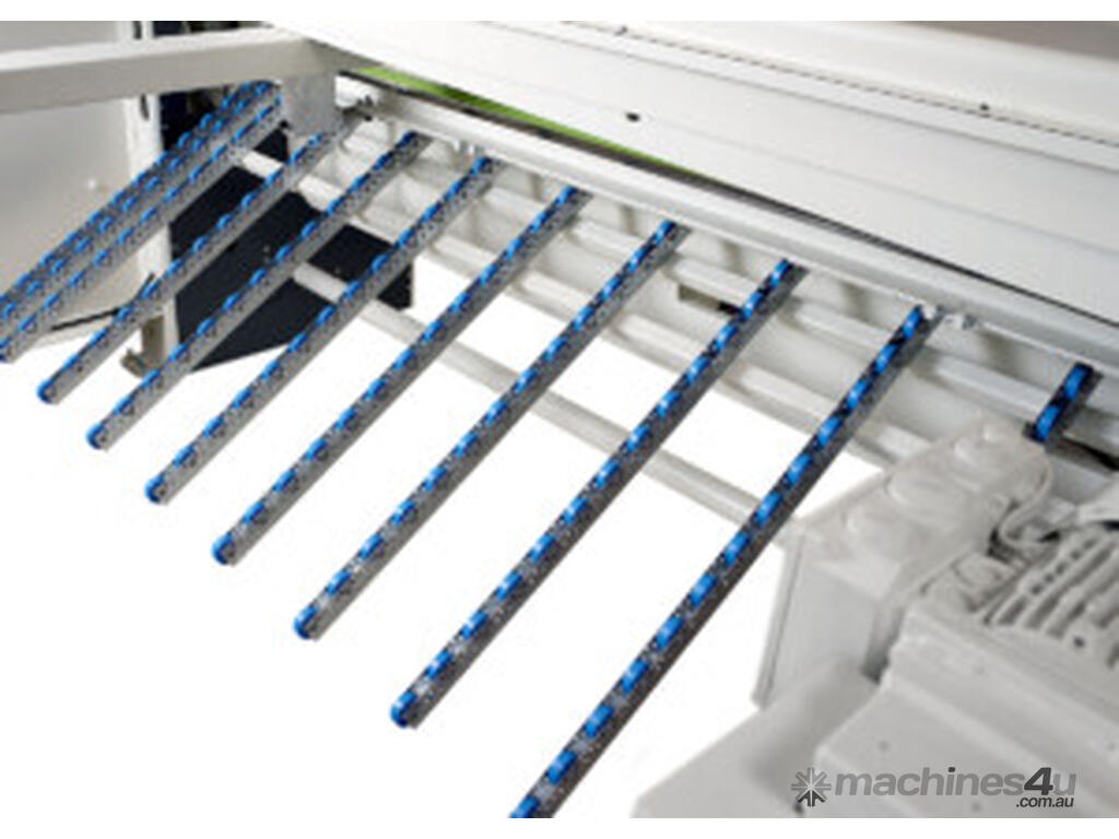 • Pneumatic hold-down beam that enables gentle handling of softer materials, such as aluminum.