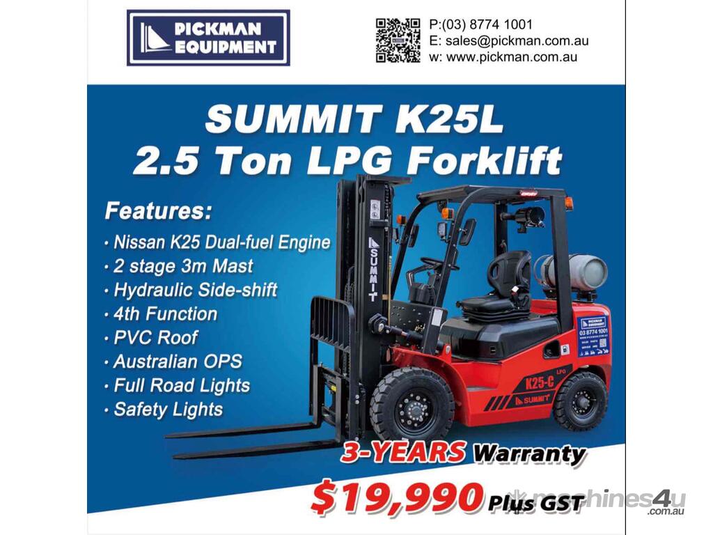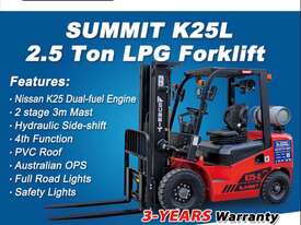 SUMMIT K25L 2.5 Ton LPG Forklift – Only $19,990 + GST
